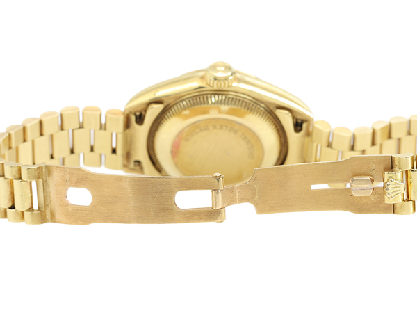 | コメント | 18金無垢ならではの高級感ある輝きと、シャンパンゴールド文字盤が華やかな印象です。 小キズやくすみはありますが、普段使いにもおすすめの一本。 裏蓋には透明保護シール付きです。 中古品をご理解の上での入札をお願いいたします。 ※出品時の日差 平置き -11秒前後 ※動作保証はご購入から1週間、内部機械の自然故障のみとさせていただきます。 ※ベルトサイズ調整について 購入前に調整可能な範囲かお問い合わせください。 ご希望の際、時計修理業者へ依頼いたしますので発送まで数日お時間がかかります。 予めご了承くださいませ。 ※お使いのディスプレイによっては、表示されている色の再現が異なるものがありますので予めご了承下さい。 |