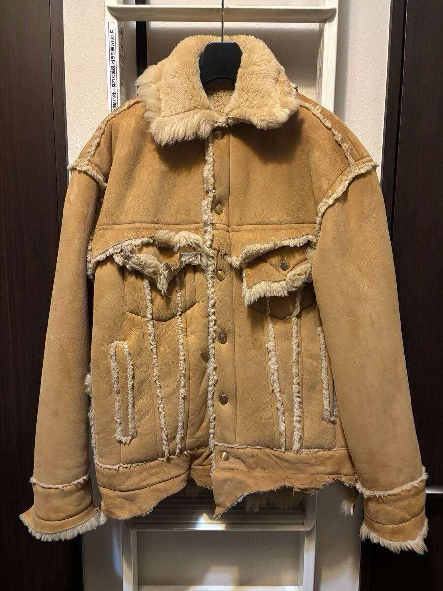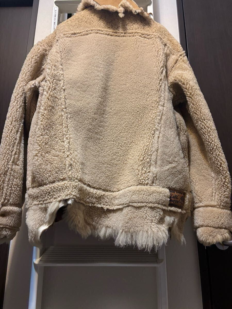 2回しか着用していないのでコンディションはとても綺麗でして、お伝えすべき注意点はございません。ただしムートン特有の購入時からございますナチュラルな色ムラや風合いがあることと、店頭で売られているような完璧な新品ではございませんので、その点はご了承ください。レザー製のプライスタグとグッドカルマのトートバッグもお付けします。