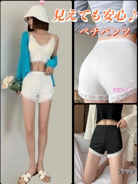 ペチパンツ 【 ホワイト-Lサイズ」】ペチコート パンツ ショート丈 ニット伸縮性あり着見せパンツシンプル 透け防止 無地新品未使用!