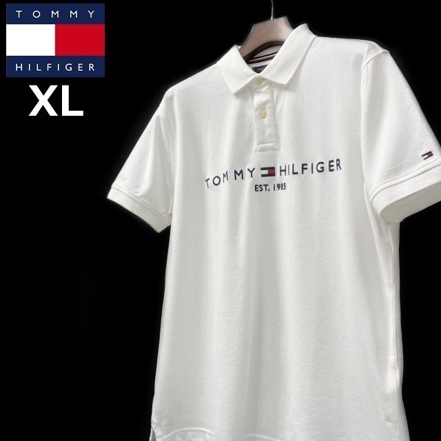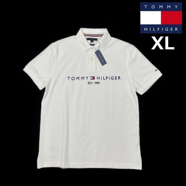 1円~!売切!【正規新品】TOMMY HILFIGER トミー ヒルフィガー◆半袖 ポロシャツ US購入 ロゴ刺繍 袖ロゴ フラッグ(XL)白 181214
