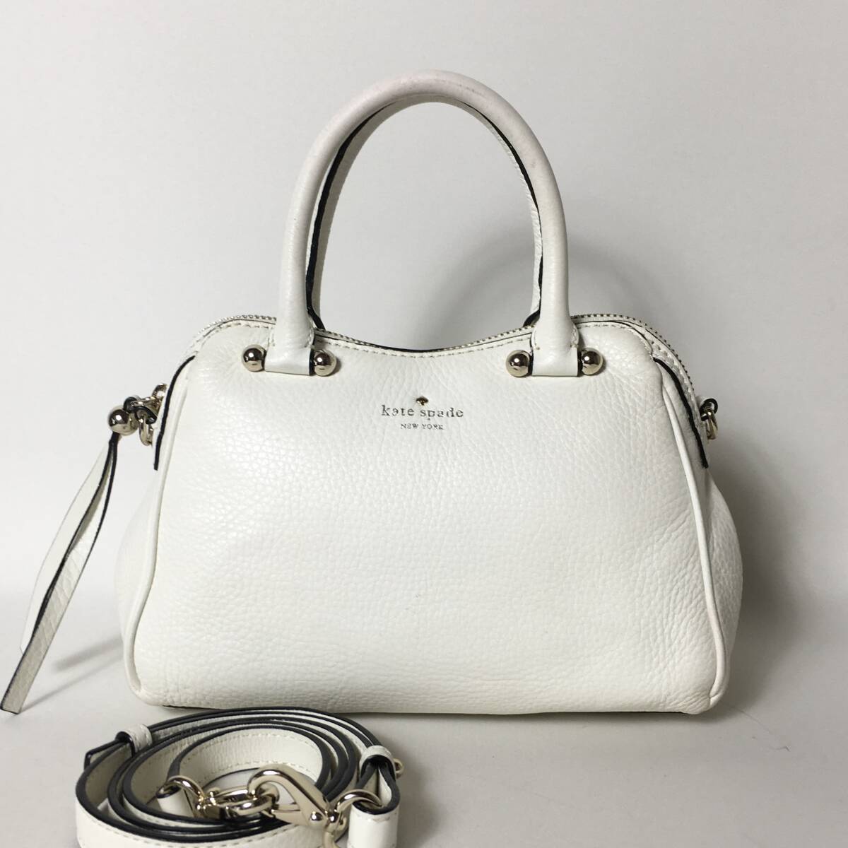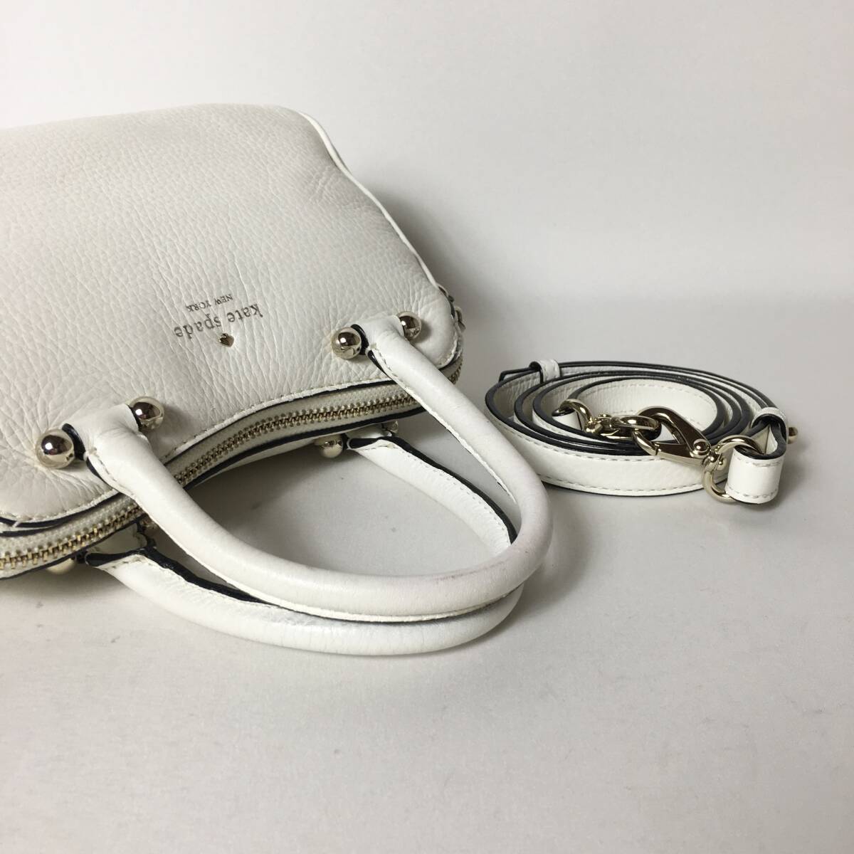 78B37| 美品 【 ブランド名 】kate spade ケイトスペード 【 アイテム名 】- 【 カテゴリ 】2WAY ハンドバッグ 【 素材 】本革 レザー 【 カラー 】ホワイト 【 その他 】- 【 付属品 】ストラップ 【 状態 】外側:ハンドル少々ベタあり ⇒ご購入前に必ず写真にてご確認ください 【 サイズ 】(cm) ※実寸値 縦×横×幅:19×24×9 ハンドル:29 ショルダーストラップ:106-118/5段階調節 【 仕様 】 ( 収納ポケット ) 外側:なし 内側:ファスナー1,オープン1 ( その他 機能 ) なし 《 備考 》 ・出品している商品は鑑定基準を全てクリアした正規品になります。コピー品の類は一切取り扱っていませんのでご安心ください。 ・中古品は商品の状態に合わせて価格を決めていますので低価格の場合もございますが正規品に間違いありません。 ・商品の状態につきましてはこれまでの経験に基づき評価させていただいておりますが、あくまで個人の主観となりますので神経質な方は購入をお控えください。 ・出来る限り現物の状態が分かるように出品しておりますが記載のない不明点等ありましたらお気軽にコメントいただければと思います。