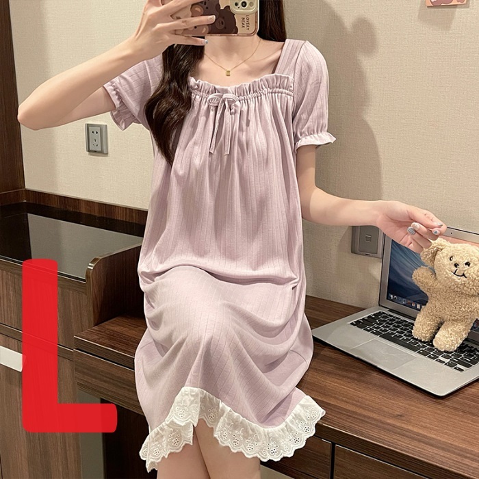 【24-1】紫・ナイトウェア・ルームウェア・パジャマ・ネグリジェ ・L