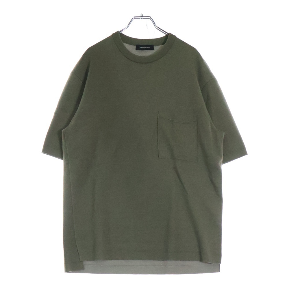 Ermenegildo Zegna エルメネジルドゼニア カシミア混 半袖ニットシャツ カーキ UZH9G