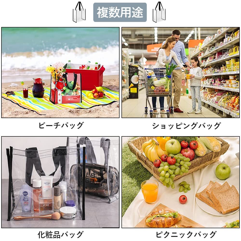 【素材】質感の良いエコ透明PVC素材を使用、ナイロン製の持ち手は補強されており、丈夫で耐久性があり、防水性があり、雨が降っても大丈夫です。(※PVC素材は開封すると少しにおいがするので、散ってもいいです。)