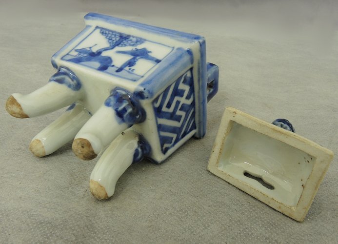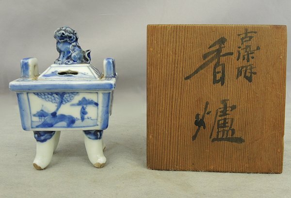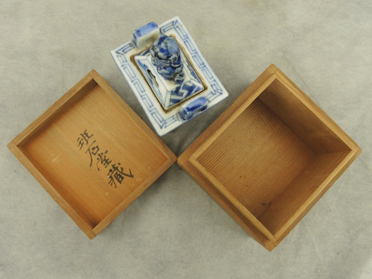 香炉 9.2cm 染付 獅子 香爐 四つ足 ミニ香炉 陶磁器 中古品 木箱付き 現状お渡し
