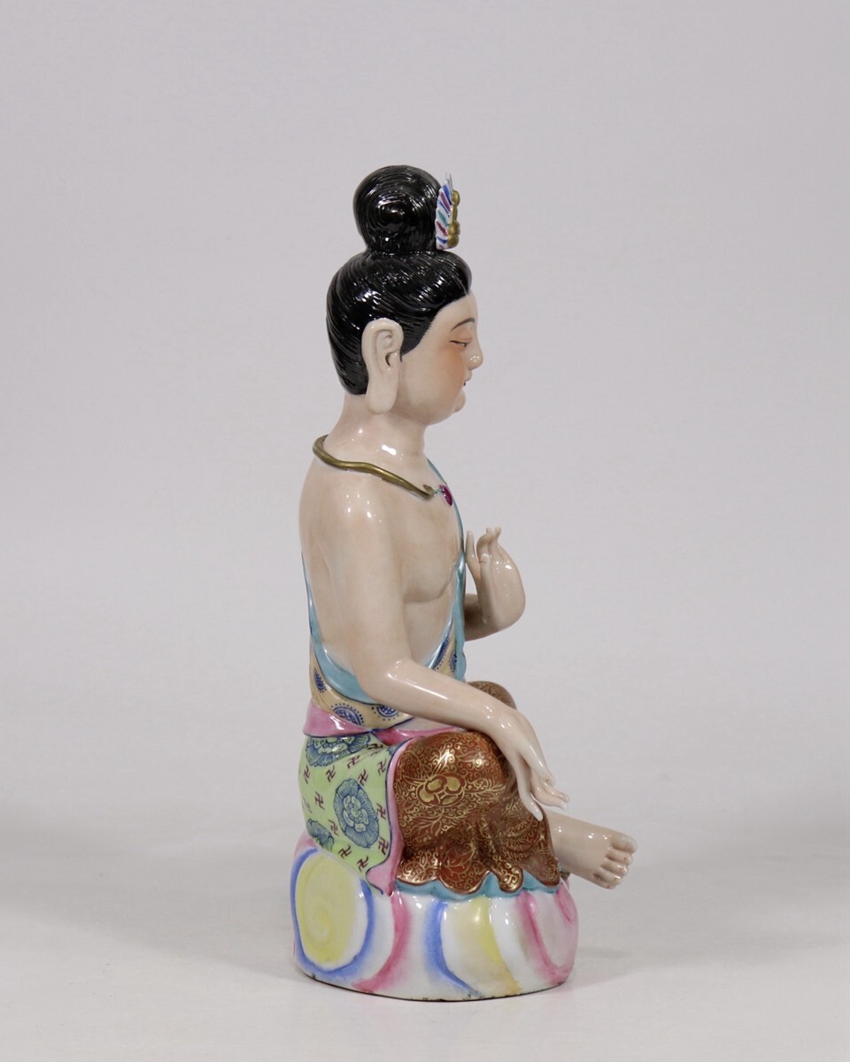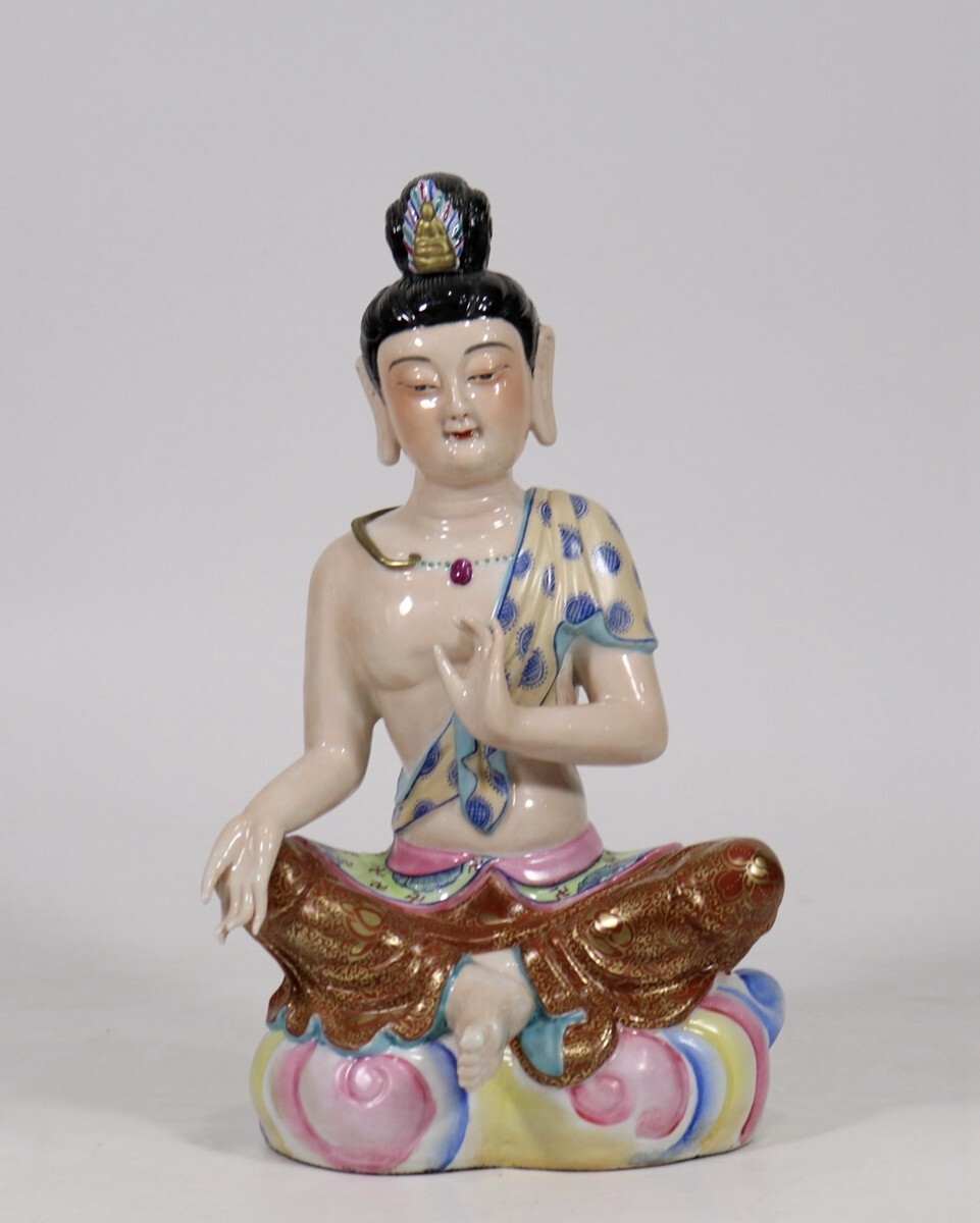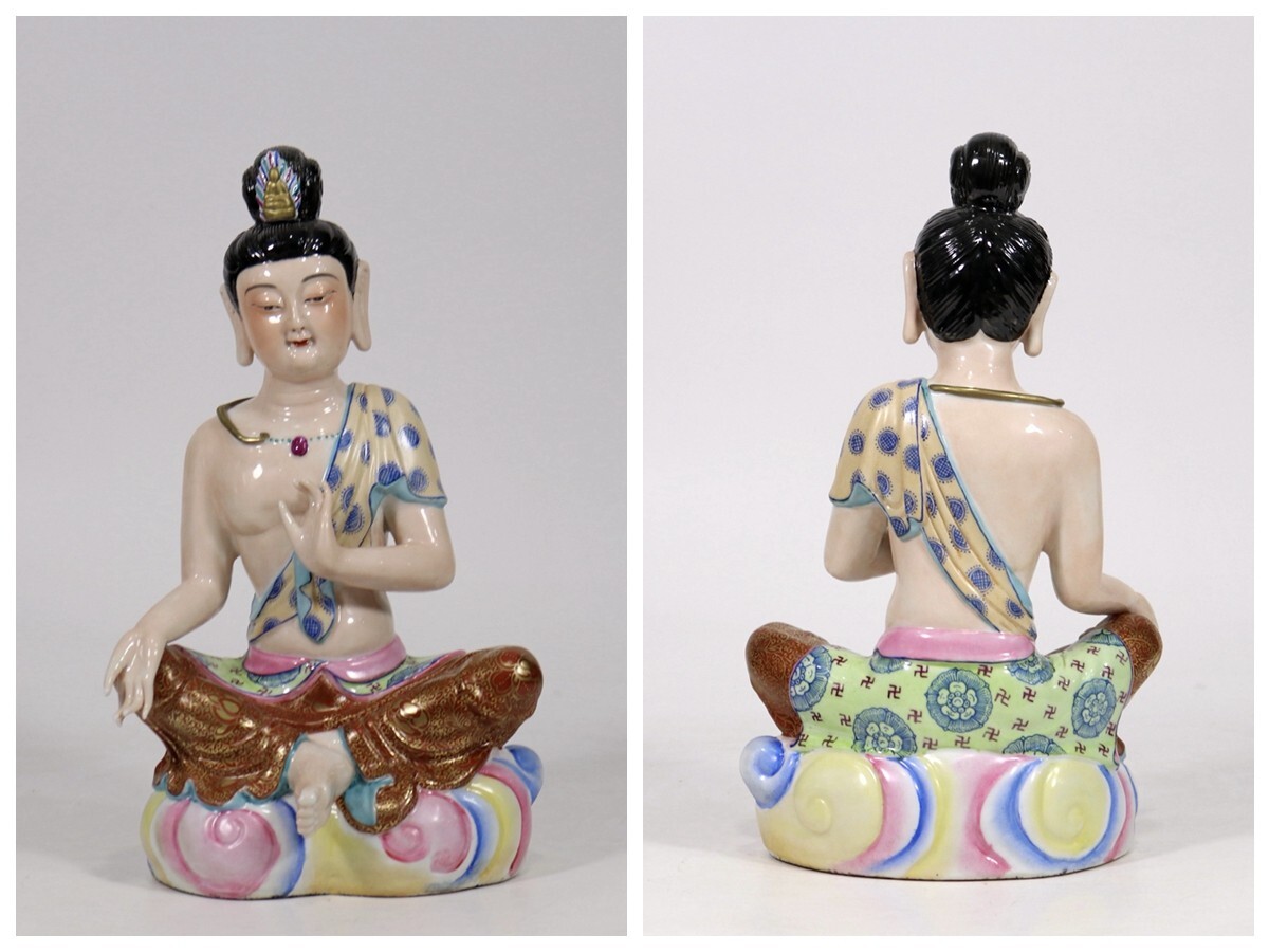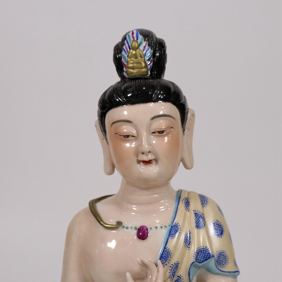 清代 大清乾隆年製 陶磁器 粉彩観音塑像【仁】染付 置物擺件 古賞物 古美術 中国古玩 蔵出