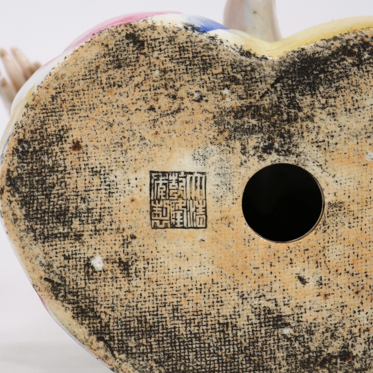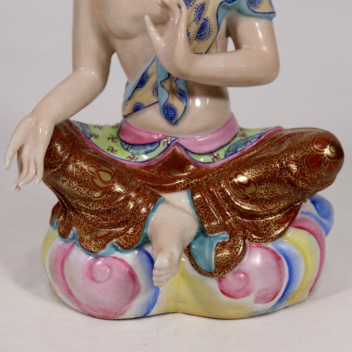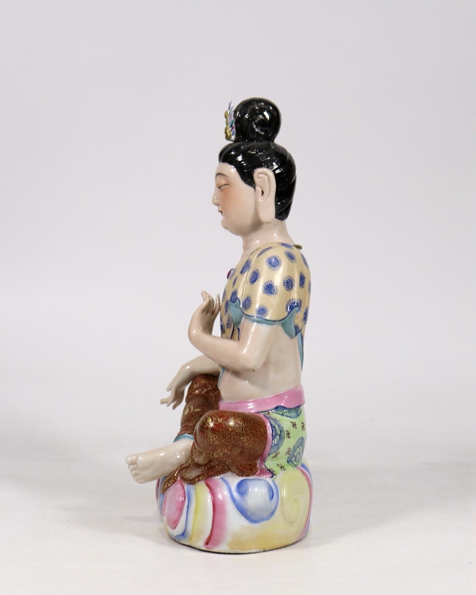 清代 大清乾隆年製 陶磁器 粉彩観音塑像【仁】染付 置物擺件 古賞物 古美術 中国古玩 蔵出