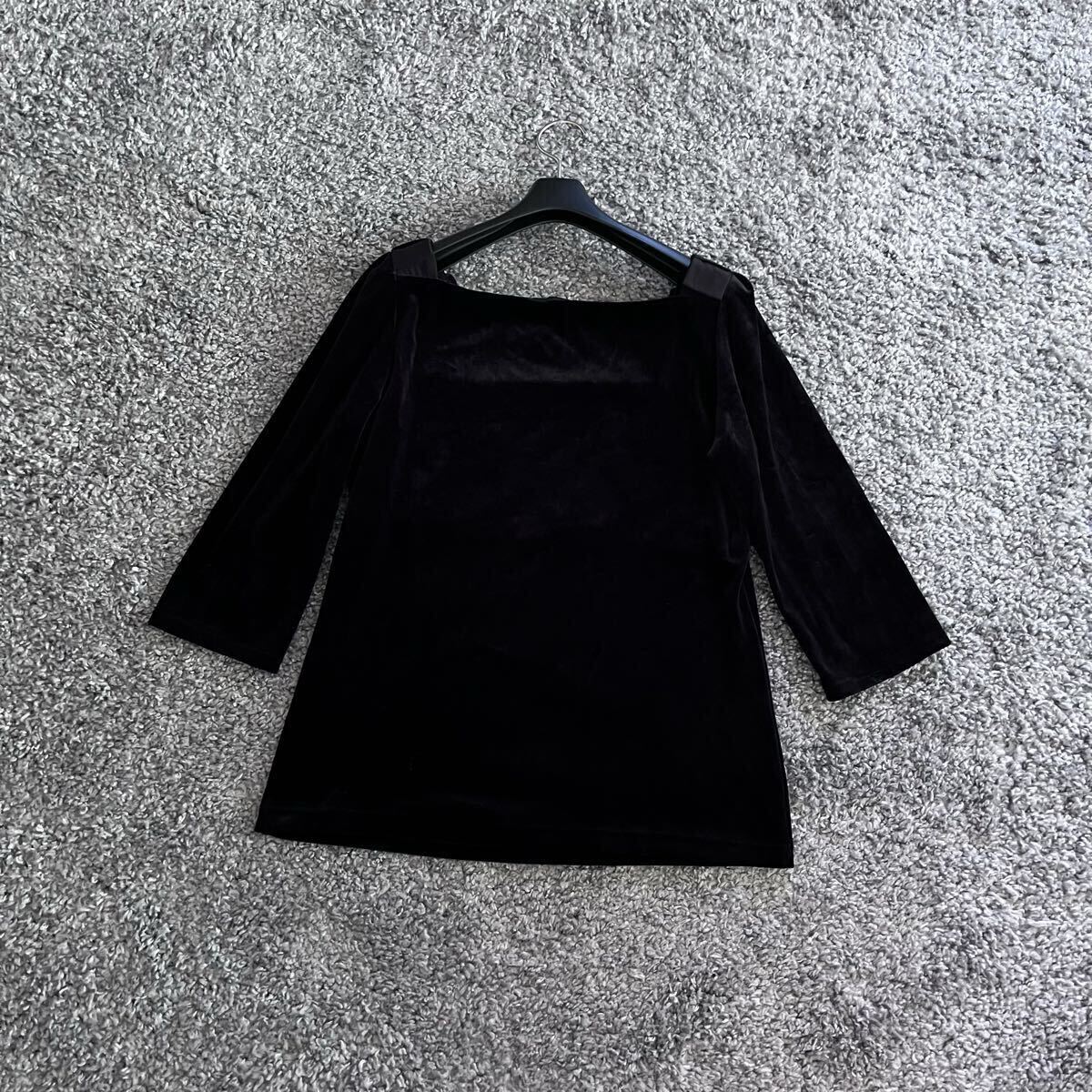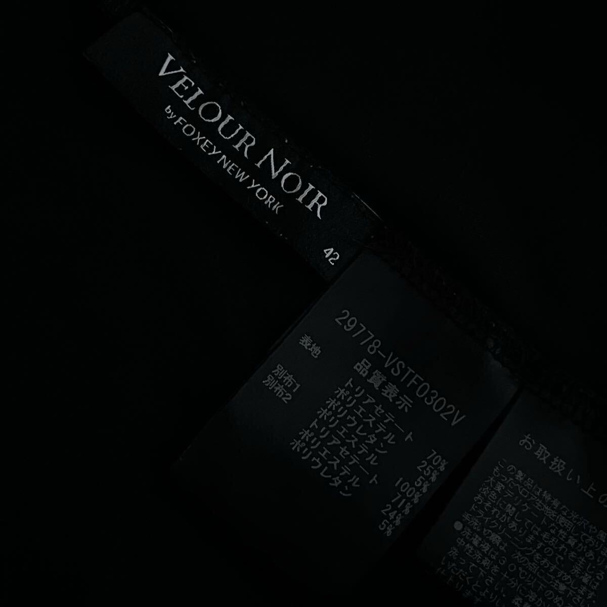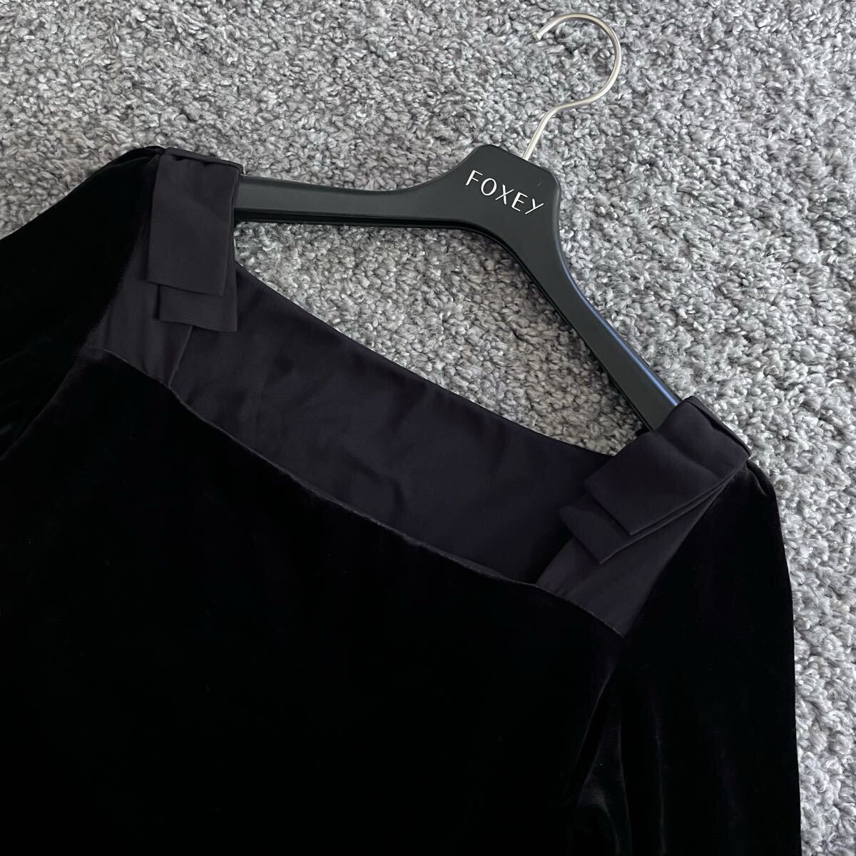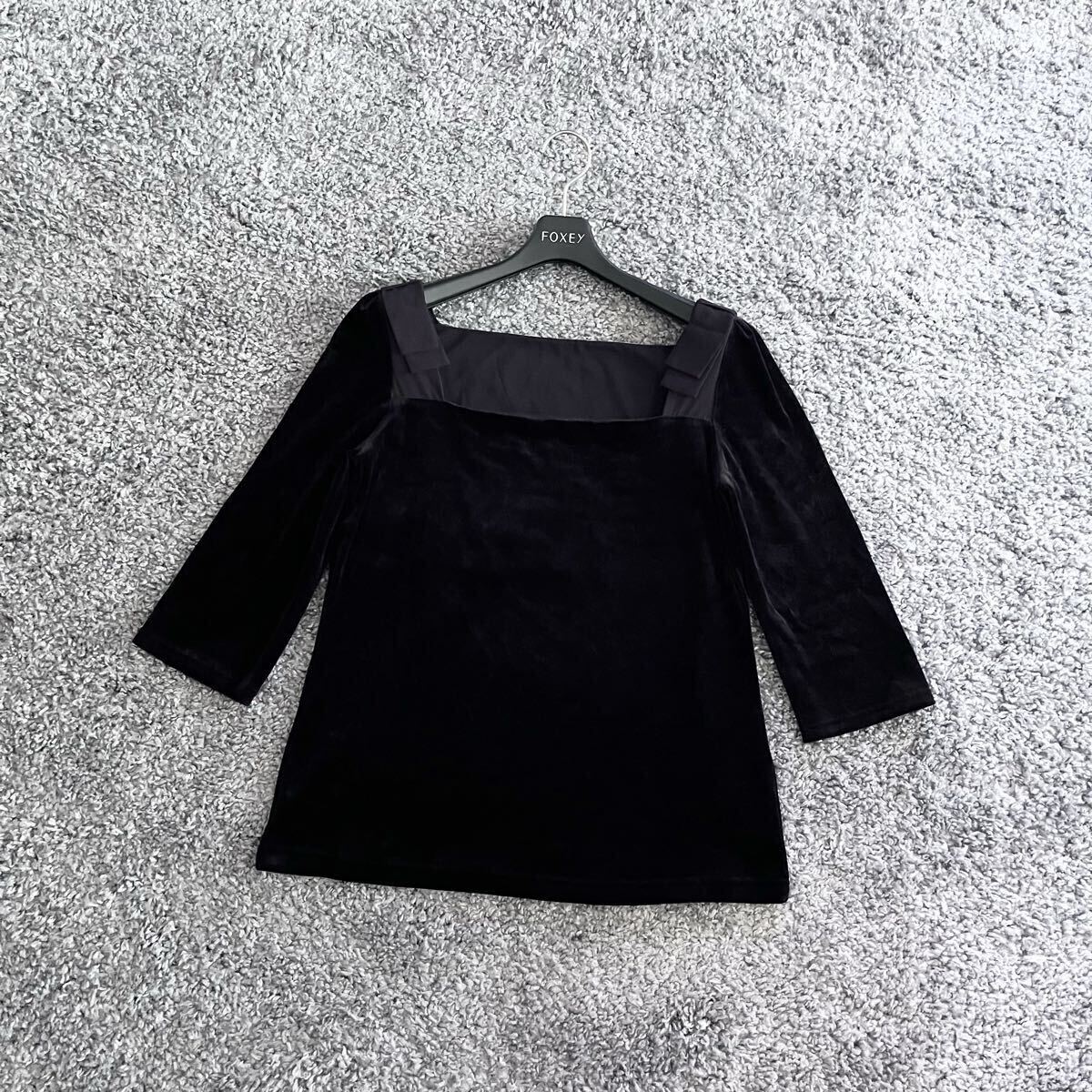 ベロアノアールバイフォクシーニューヨークのトップスです。ブラックのベロア素材と肩部分は別素材。