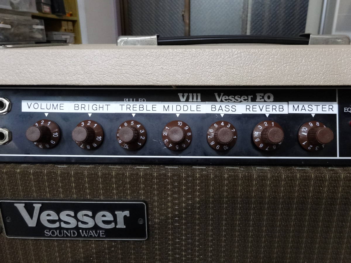 パネル操作面左からVOLUME BRIGHT TREBLE MIDDLE BASS REVERB MASTER です。