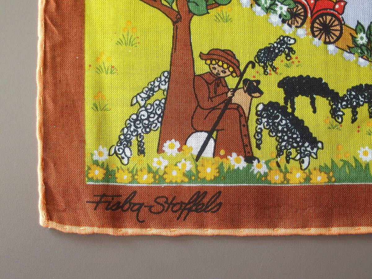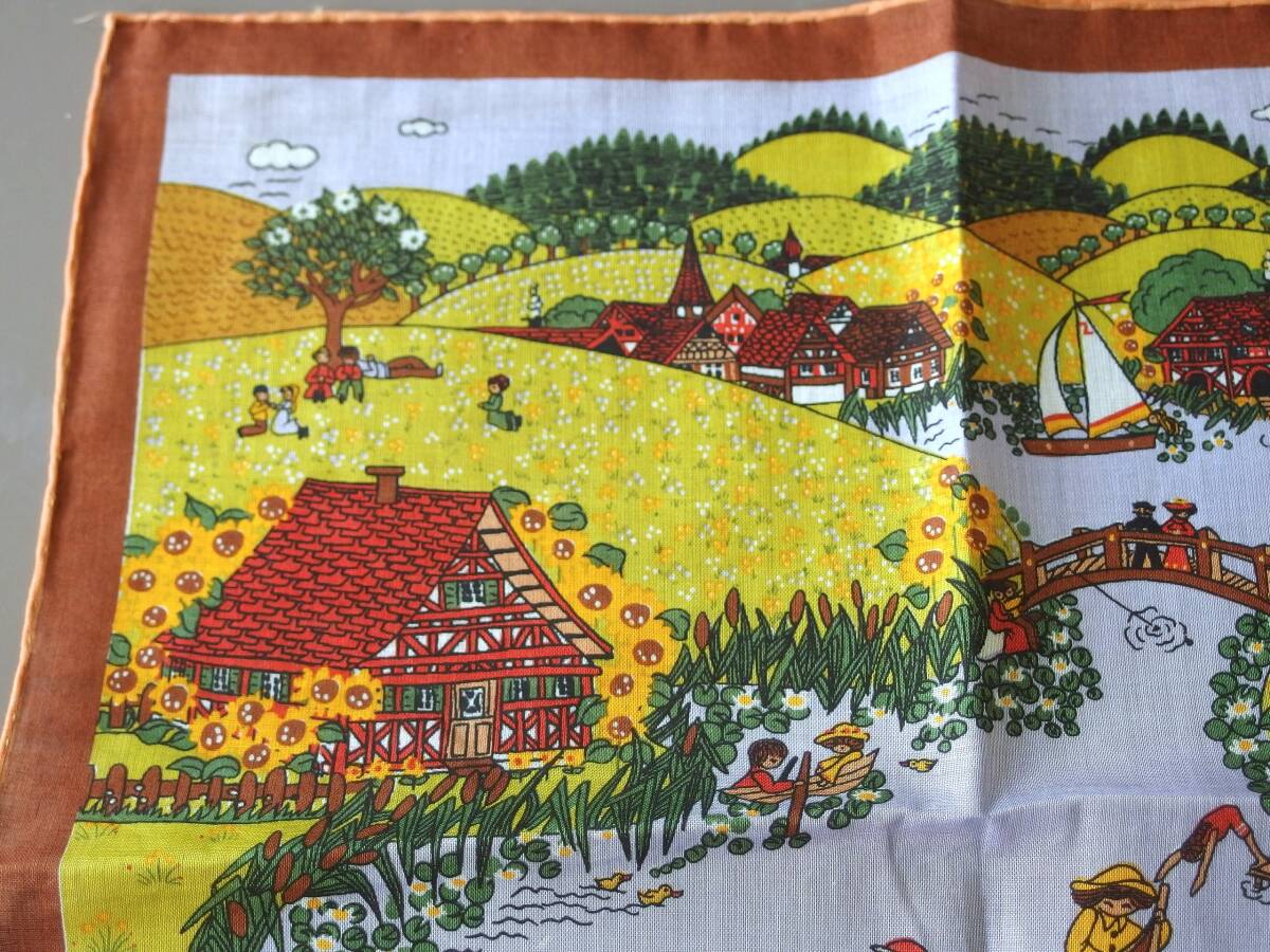 現行品にない、とてもかわいいイラストと色彩のハンカチです。フレームに入れてインテリアとしても飾れる品かと思います。