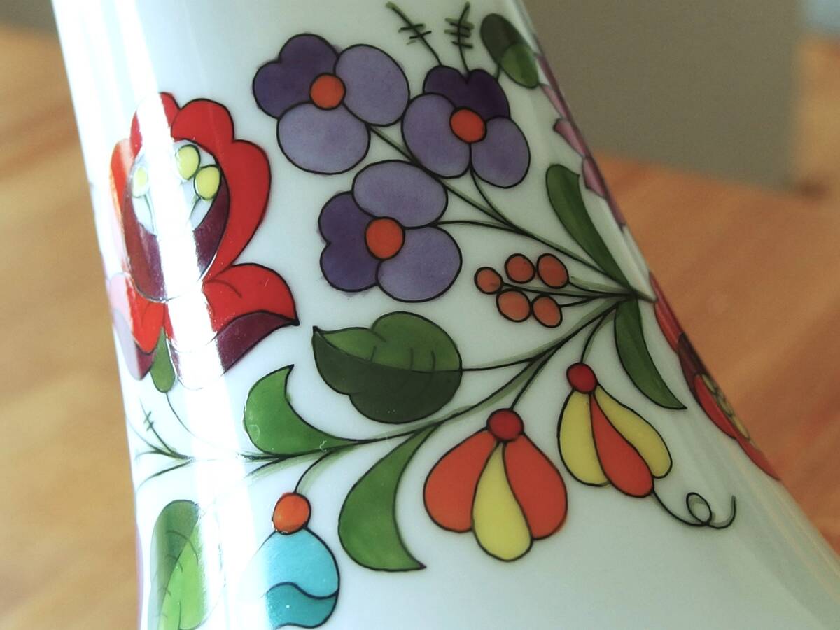 美品!ハンガリー製 カロチャ Kalocsa ハンドペイント花瓶、フラワーベース 高さ20.3cm