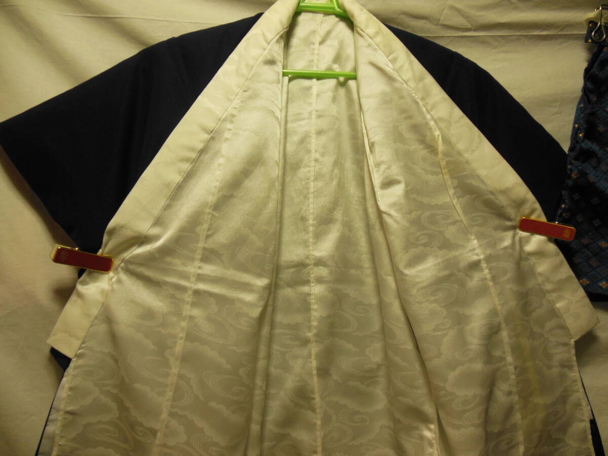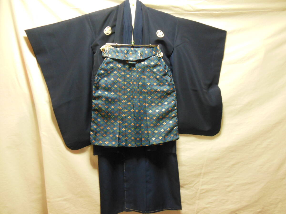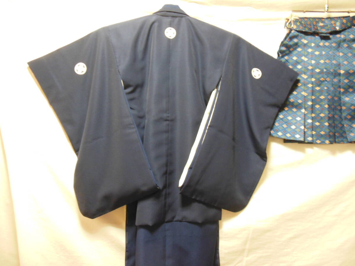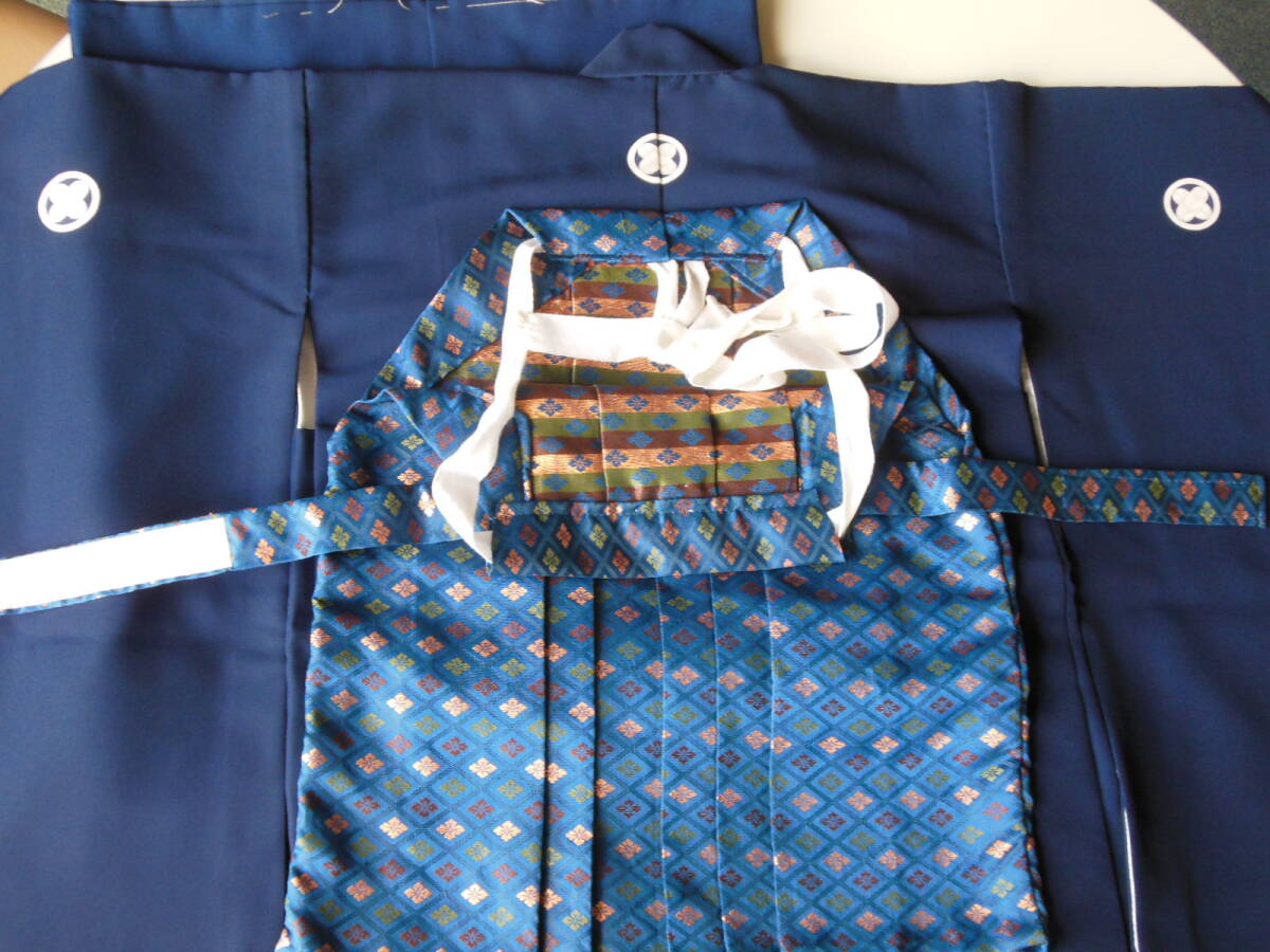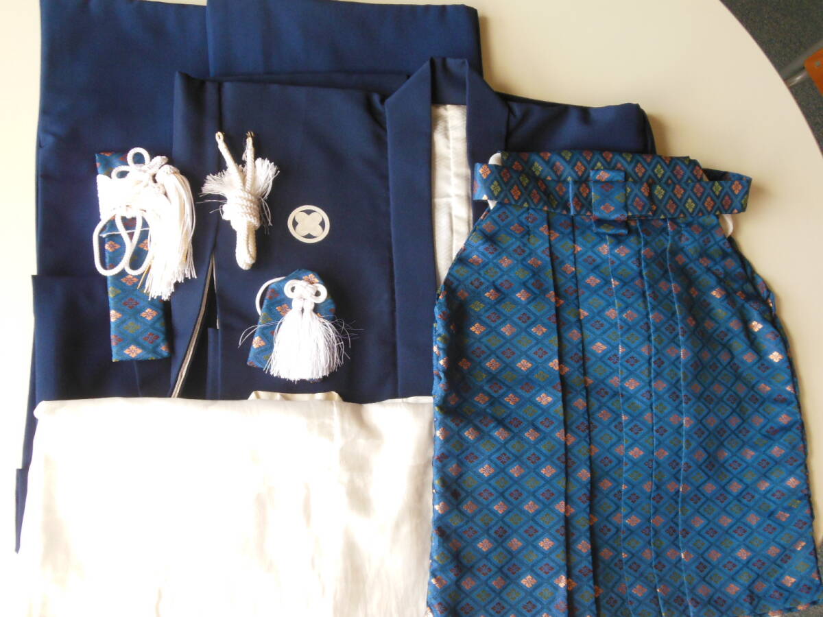 3歳用の男の子の羽織と着物、袴です。長襦袢にシミあります。画像ご覧ください。ポリエステルなので、洗うと落ちるかもしれません。