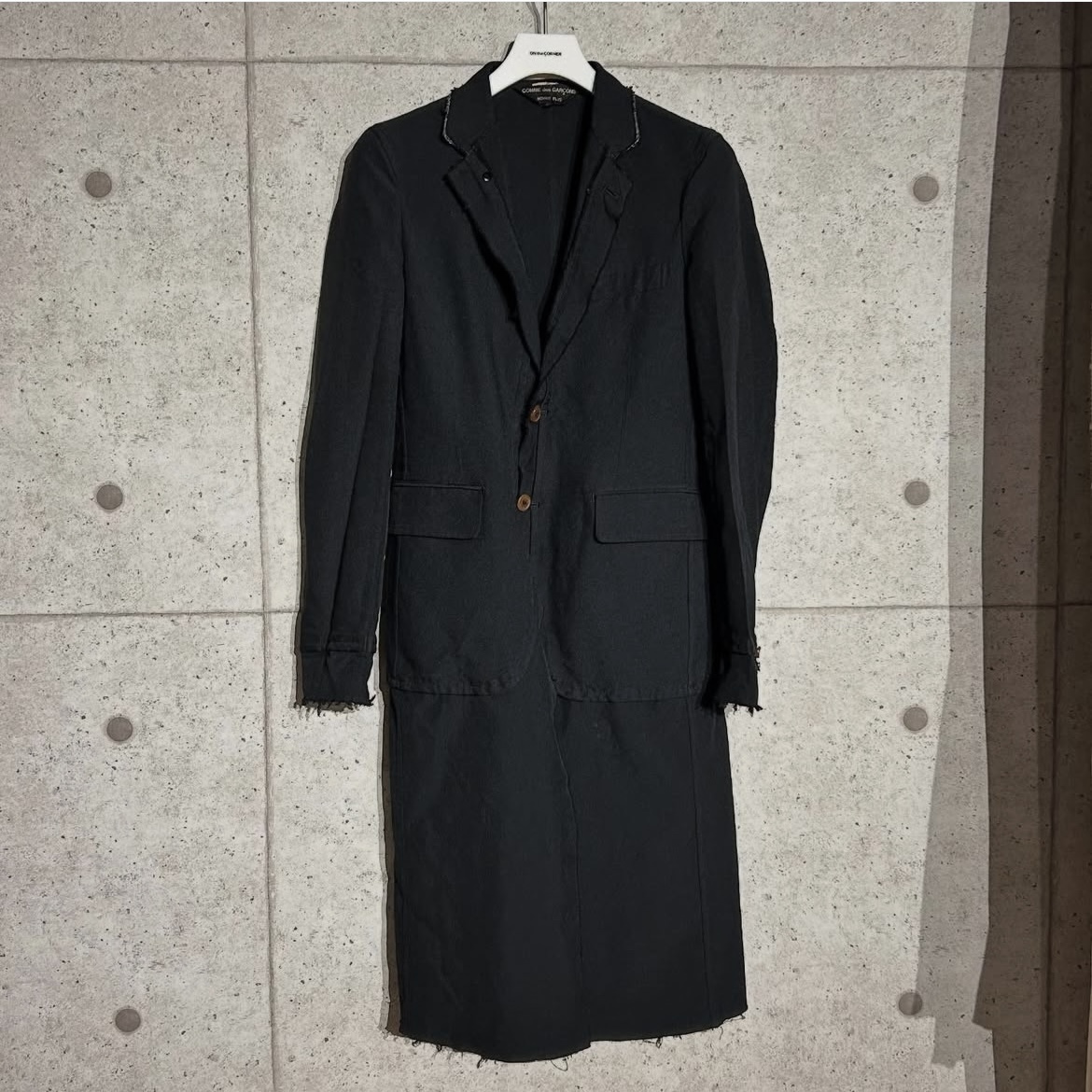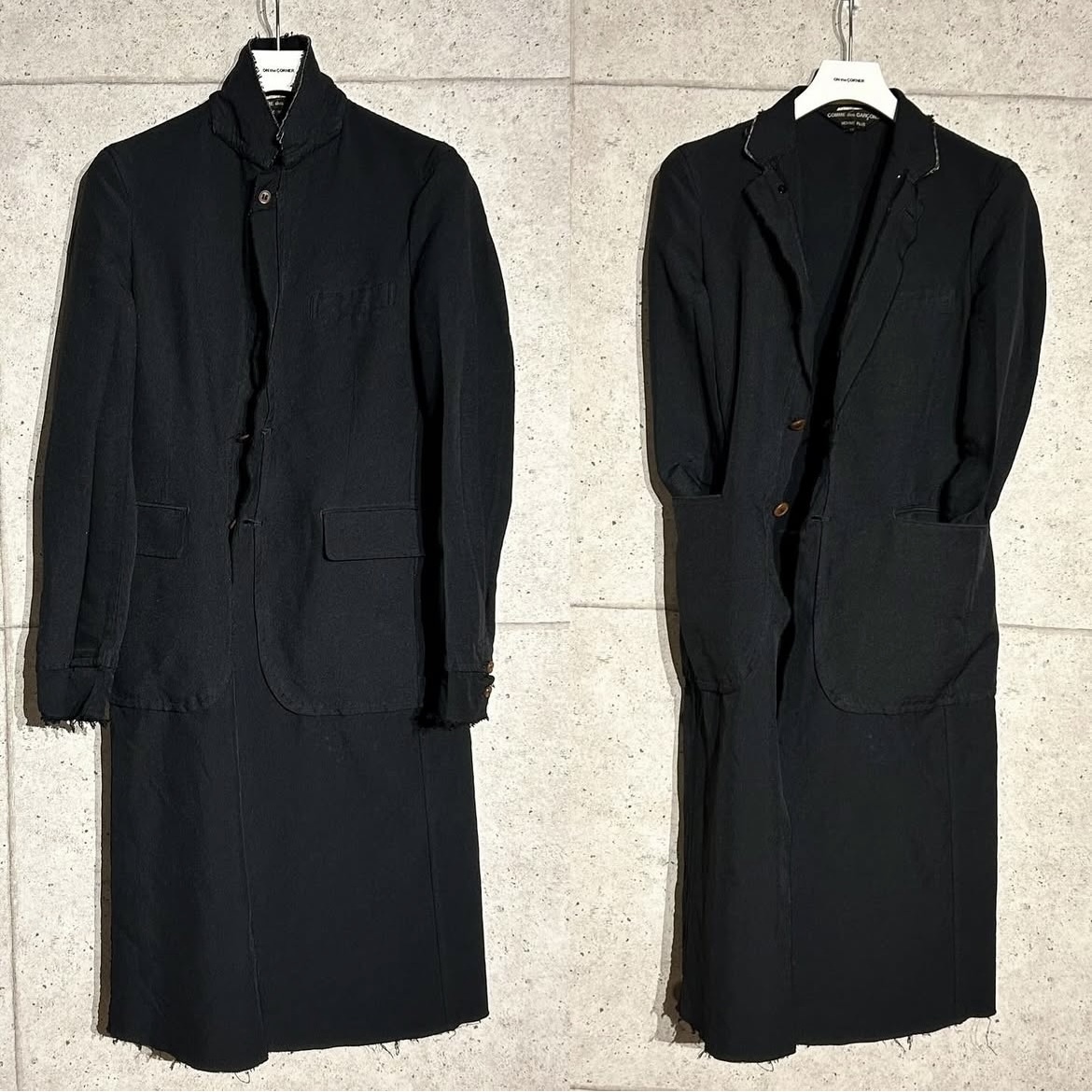 コムデギャルソンオムプリュスのドッキングデザインのロングジャケットです。