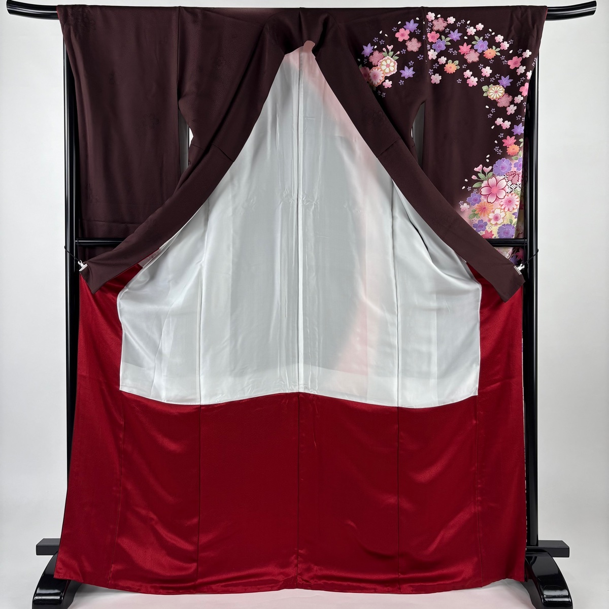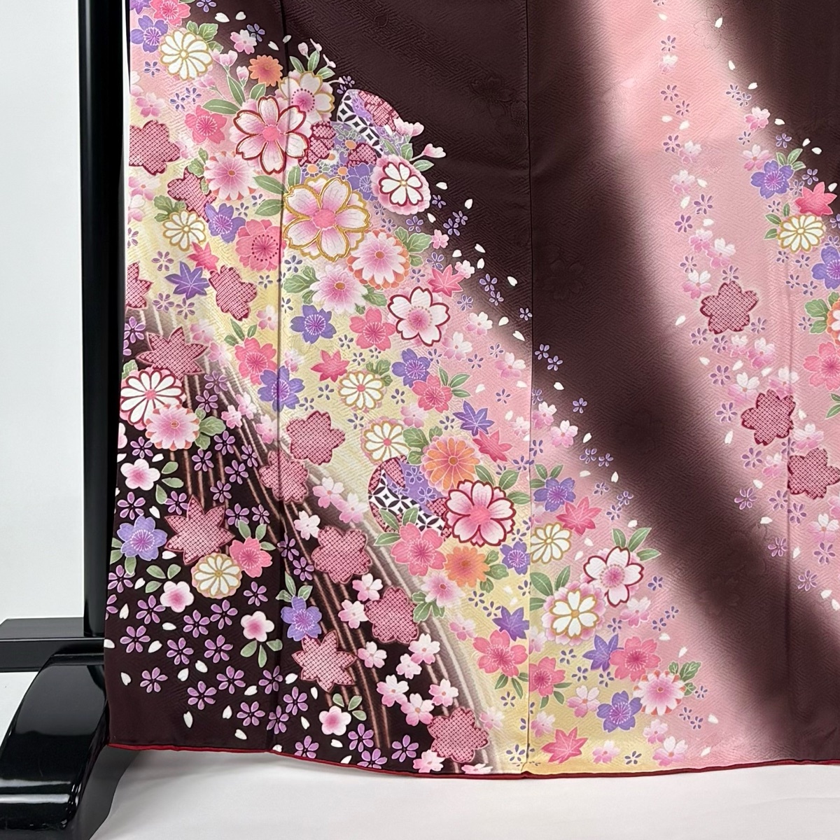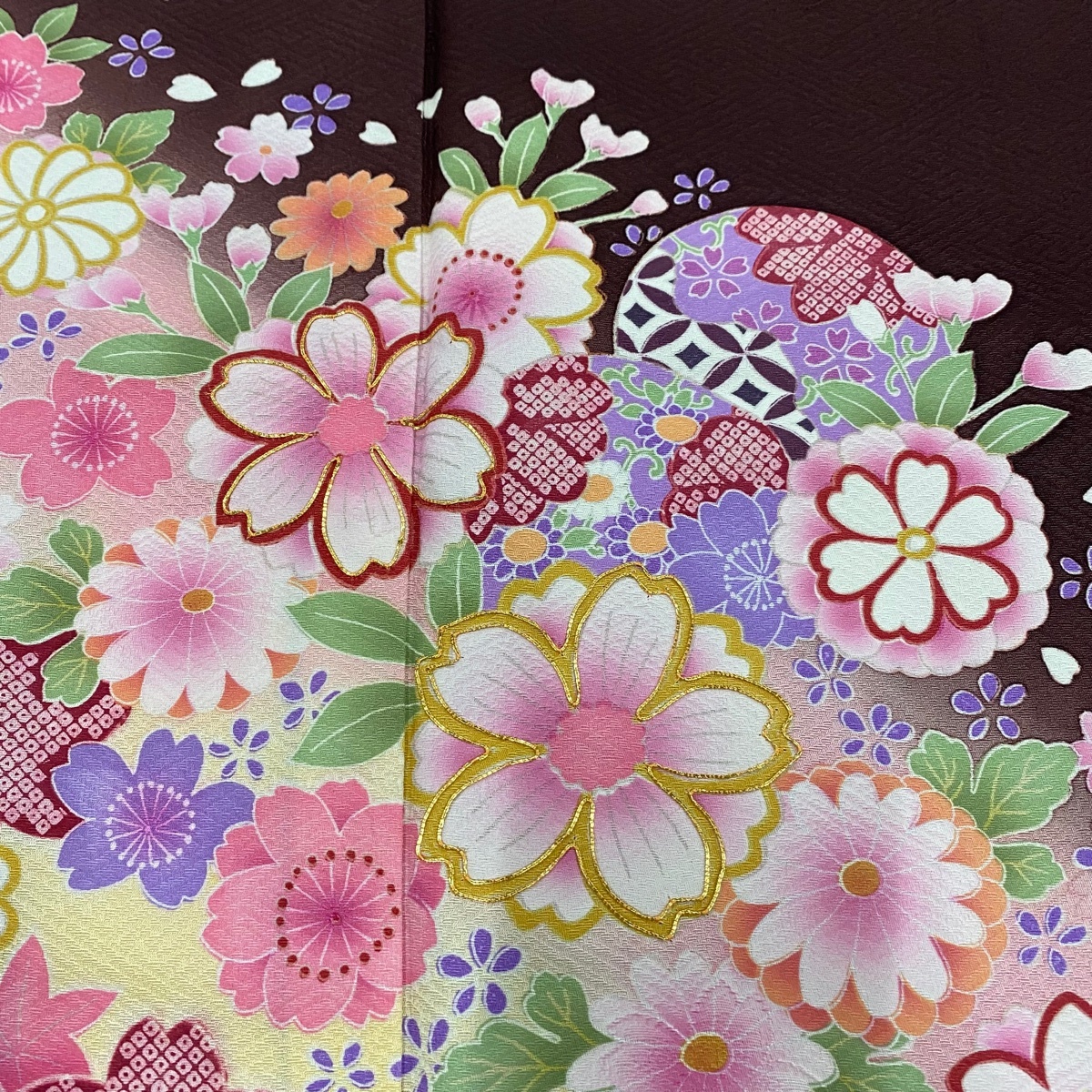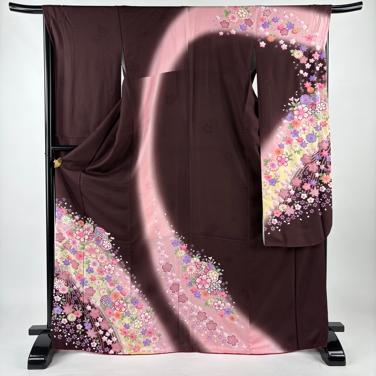 | 振袖 名品 草花 七宝 金糸 ぼかし 茶色 袷 身丈171 裄丈67 M 正絹 【中古】 |