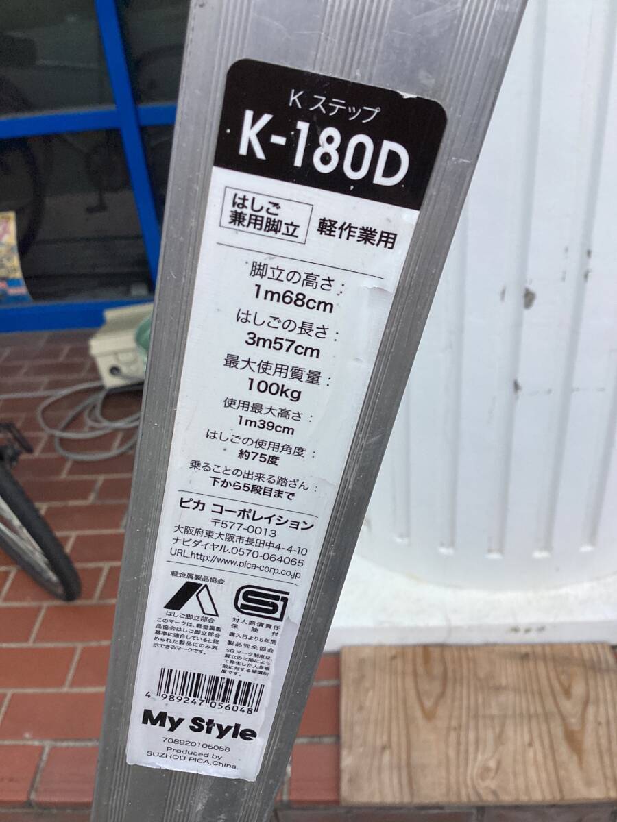 商品名 | ピカ K-180D はしご兼用脚立(軽作業用) ※現状品 脚立の高さ 1m68cm・はしごの長さ 3m57cm(キ-140) |
