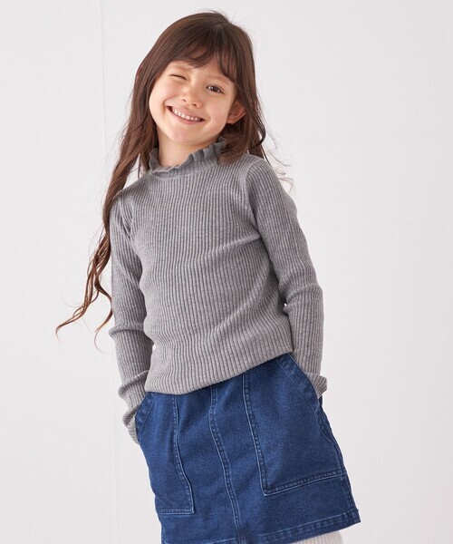 キーワード:ニット セーター キッズ 子供服 ショート丈 タートルネック フリル 長袖