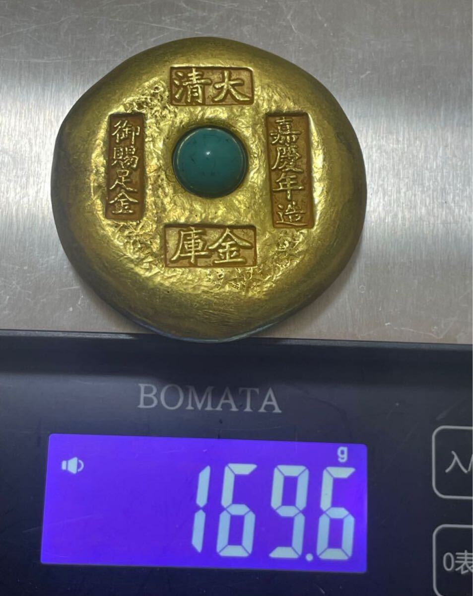 滅多に出ない【裏面財字】嘉慶年造「御賜足金 大清 金庫」装飾金貨!超激レア!