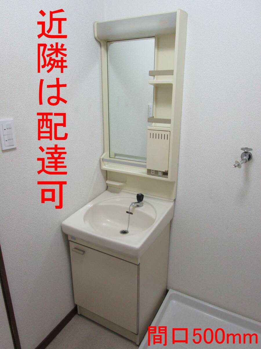 中古ですので、それなりに使用感・汚れがあります。取り外すまでは問題なく使えていましたが、ノークレーム・ノーリターン・ノーキャンセルでお願いします。発送方法は、クロネコ宅急便2個口(180サイズと200サイズ)を予定していますが、引き取りでも構いませんし、近隣なら配達もします。配達をご希望の場合は、ご落札前にお届け先をお知らせください。洗面台の大きさは、間口500ミリ・奥行500ミリ・高さ780ミリで、化粧鏡の大きさは、間口500ミリ・高さ1020ミリです。