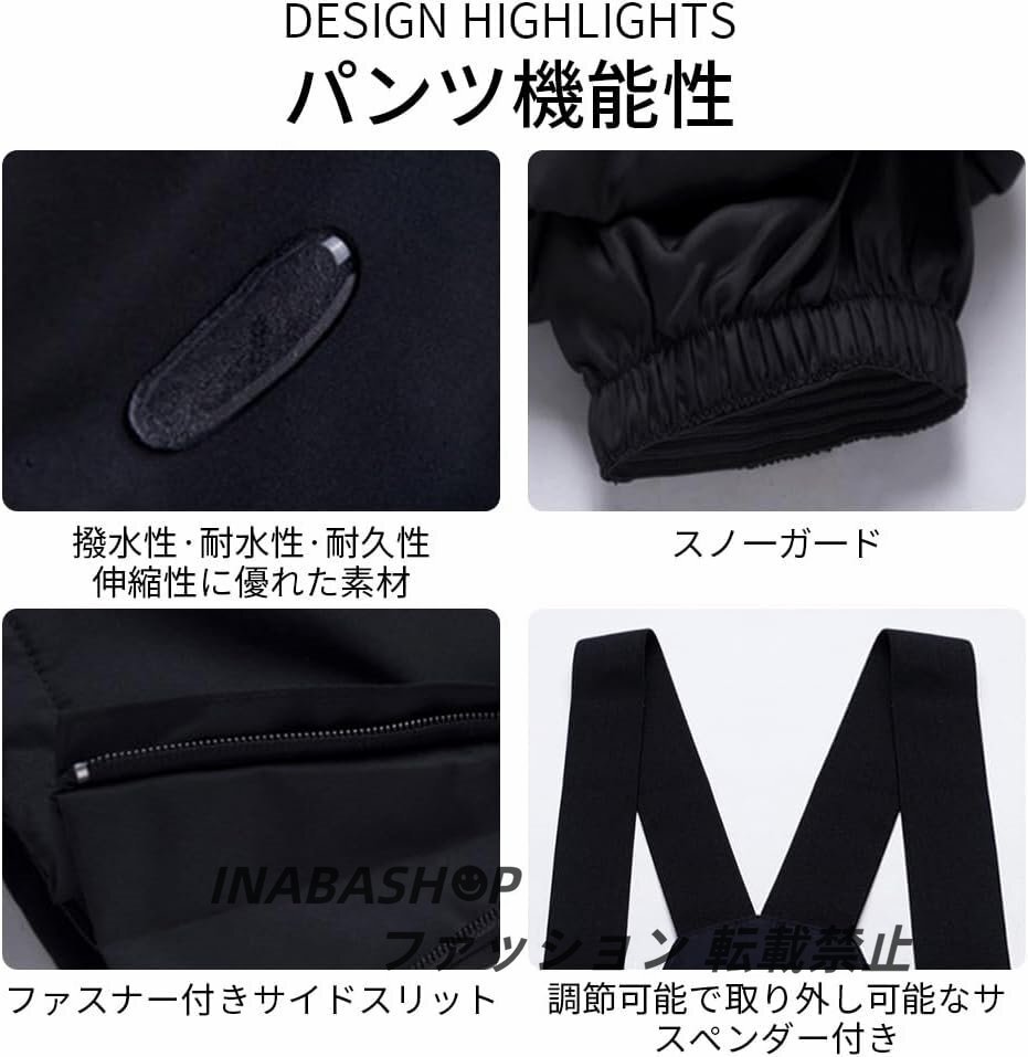 スノーボード ウェアメンズ レディース 上下セットスキーウェア ビブパンツ フード付サスペンダー男女兼用アウトドア 登山軽量 防風 防寒
