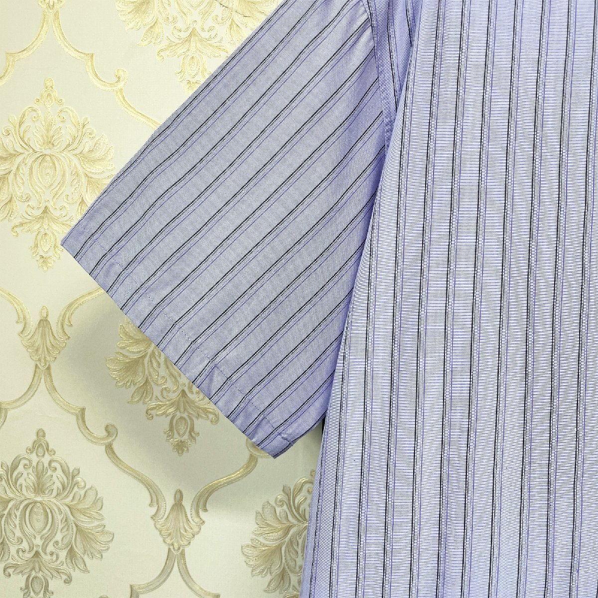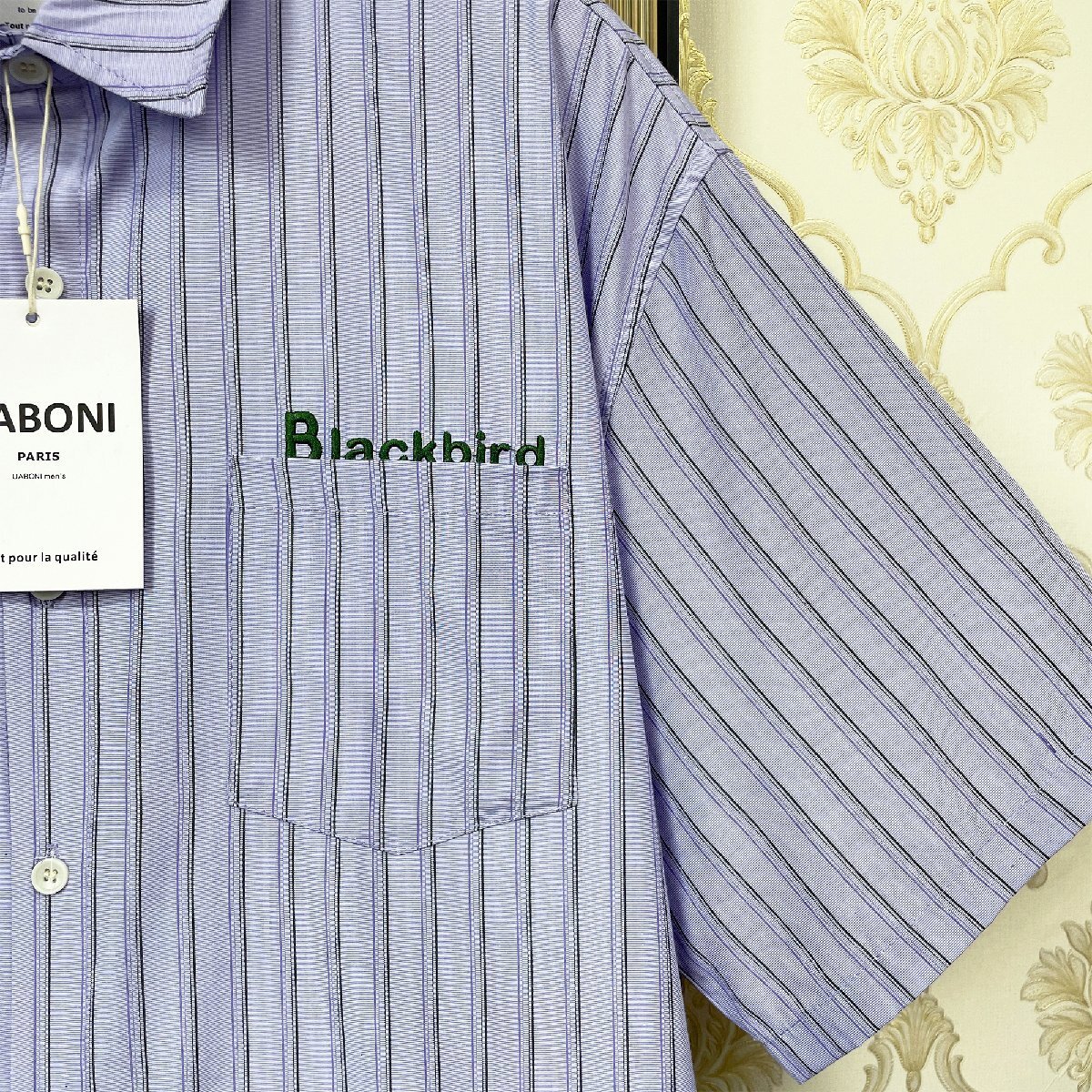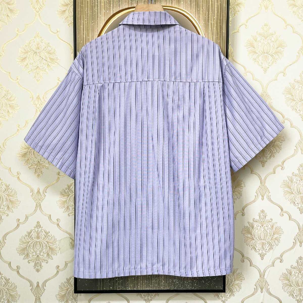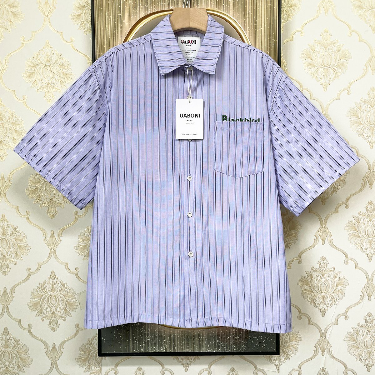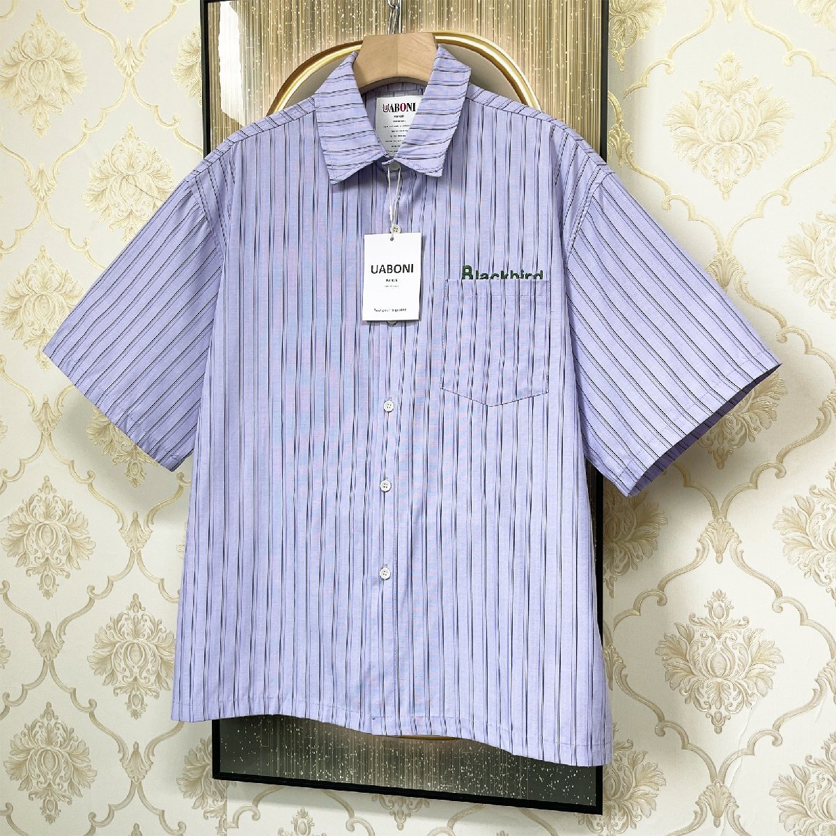 逸品EU製&定価3万◆UABONI*Paris*半袖シャツ*ユアボニ*パリ発◆コットン100% 上品 薄手 ストライプ 刺繍 スウェット カジュアル M/46サイズ