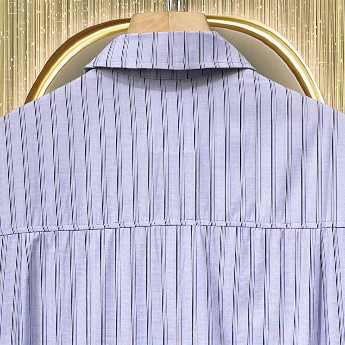 全体的には爽やかなストライプ柄を取り込んで、スタイルに左右されず清涼感溢れ、いつものおしゃれを格上げしてくれます!胸元には立体感がある英字柄が施され、グリーンカラーをポイントで効かせ大人の遊び心をプラス、センスの良さを醸し出します。羽織るだけで自然とお洒落にスタイリングが決まってしまう不思議なコーデ能力を持っています!淡白になりがちな夏コーデのアクセントに最適です!!