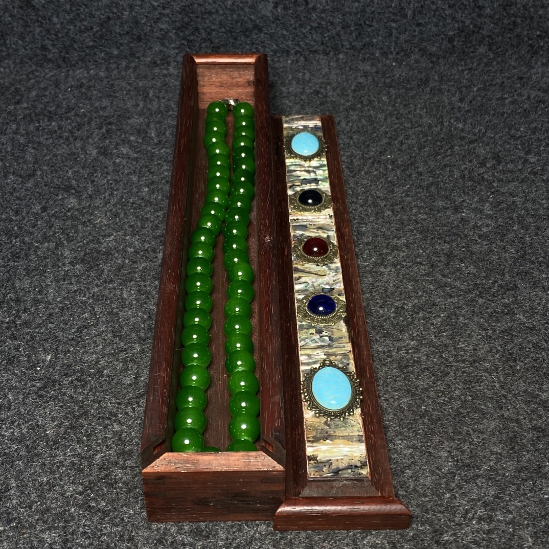 清代 宮廷御藏 翡翠彫 花梨木盒 翡翠 項鏈 首飾 念珠 一套 箱付 首飾 時代物 古董品 骨董 旧家蔵出 唐物 中国古玩 古美術品