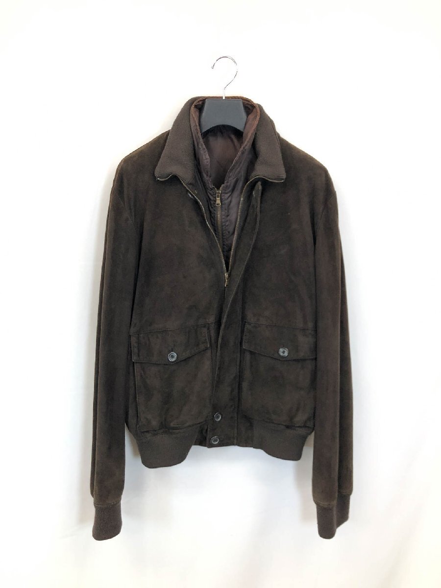 【TIE YOUR TIE タイユアタイ】ライナー付 2WAY リブ切替 スエードレザーブルゾン (メンズ) size50 ダークブラウン系 伊製 ◇17MB4772◇