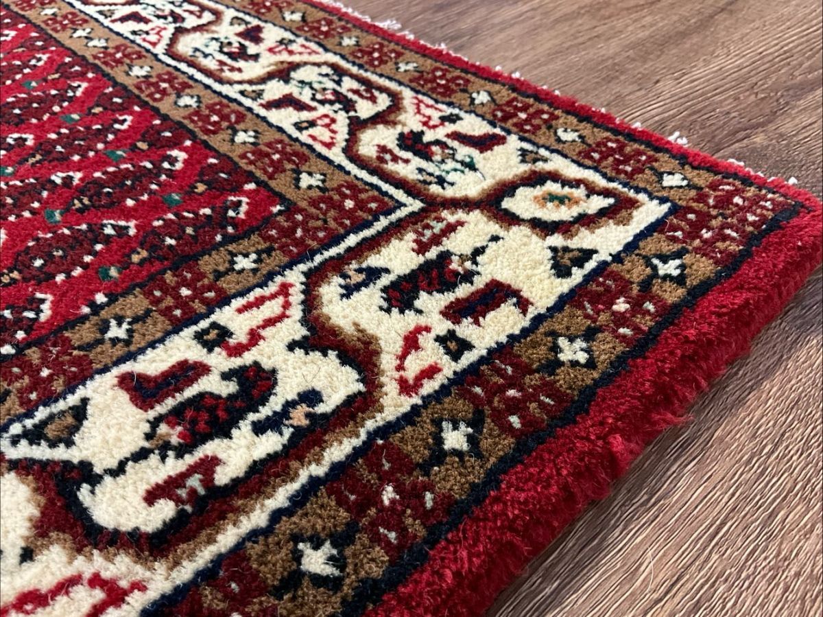 ・手織り絨毯の場合、汚れ防止の観点から、機械生産品に見られる油抜きを行っていないため、ウール特有の匂いがあることがございます。