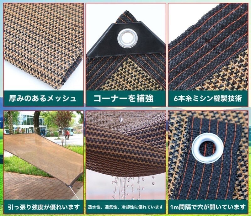 遮光ネット・サンシェード・日よけネット材質高密度ポリエチレン(PE+UV)カラーブラウンサイズ2m×2m商品説明【優れた耐久性】優れた高密度のポリエチレンで作られていて耐久性が良いです。【日よけ効果抜群】直射日光を遮り、遮光率は約90%カット! 日よけ効果が抜群