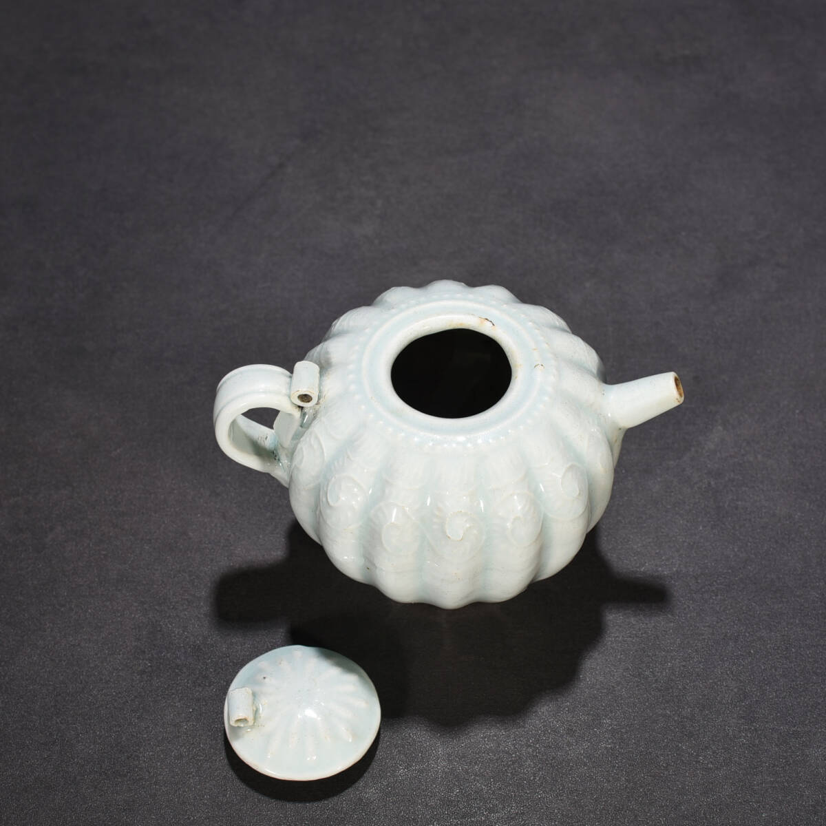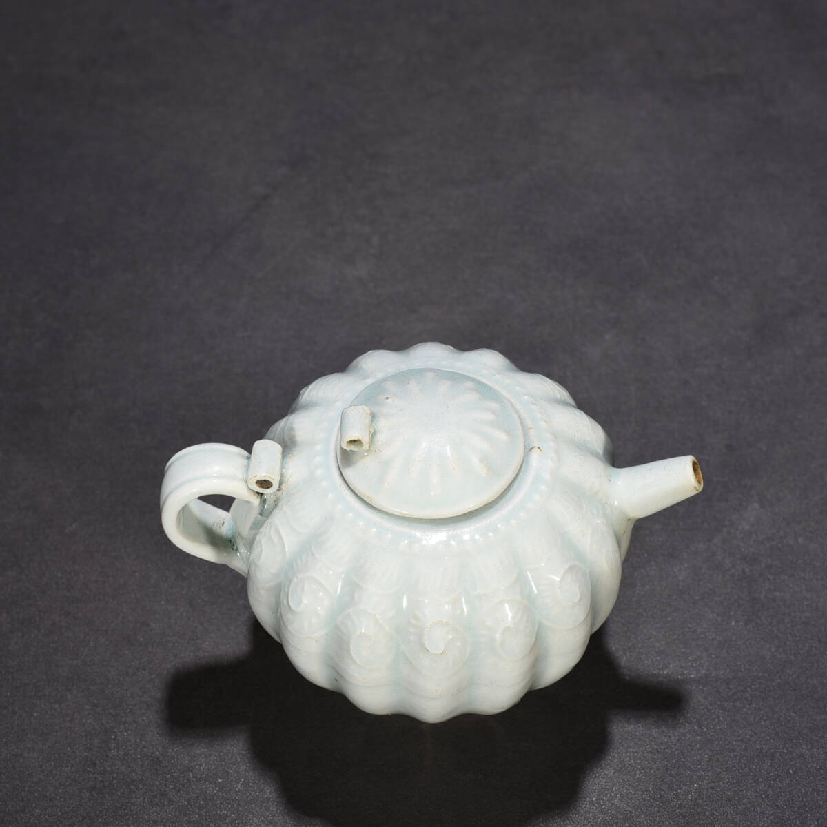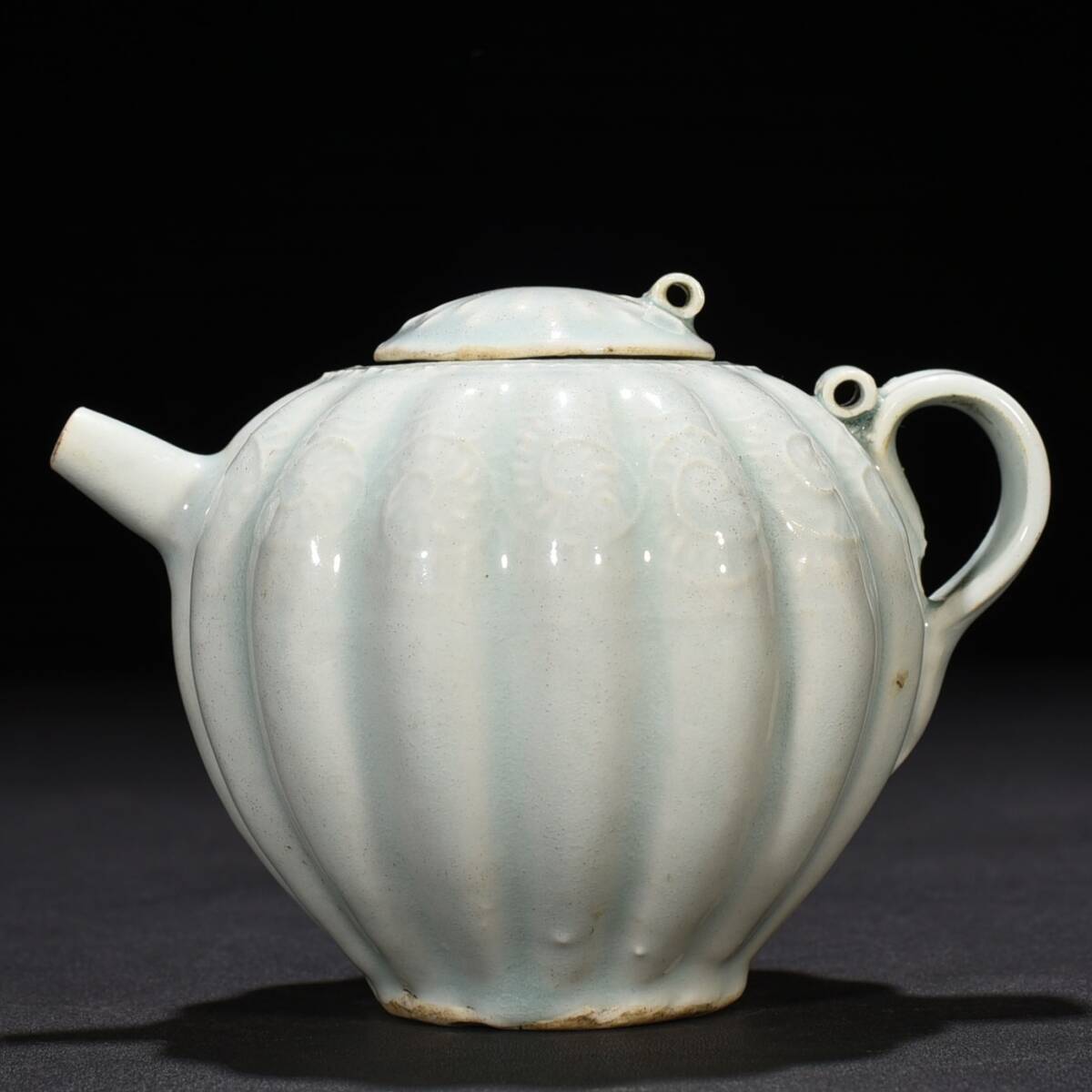 宋時代 湖田窯 影青釉瓜波壺 陶磁器 中国美術 高さ10 cm 幅13 cm 骨董品 唐物 818