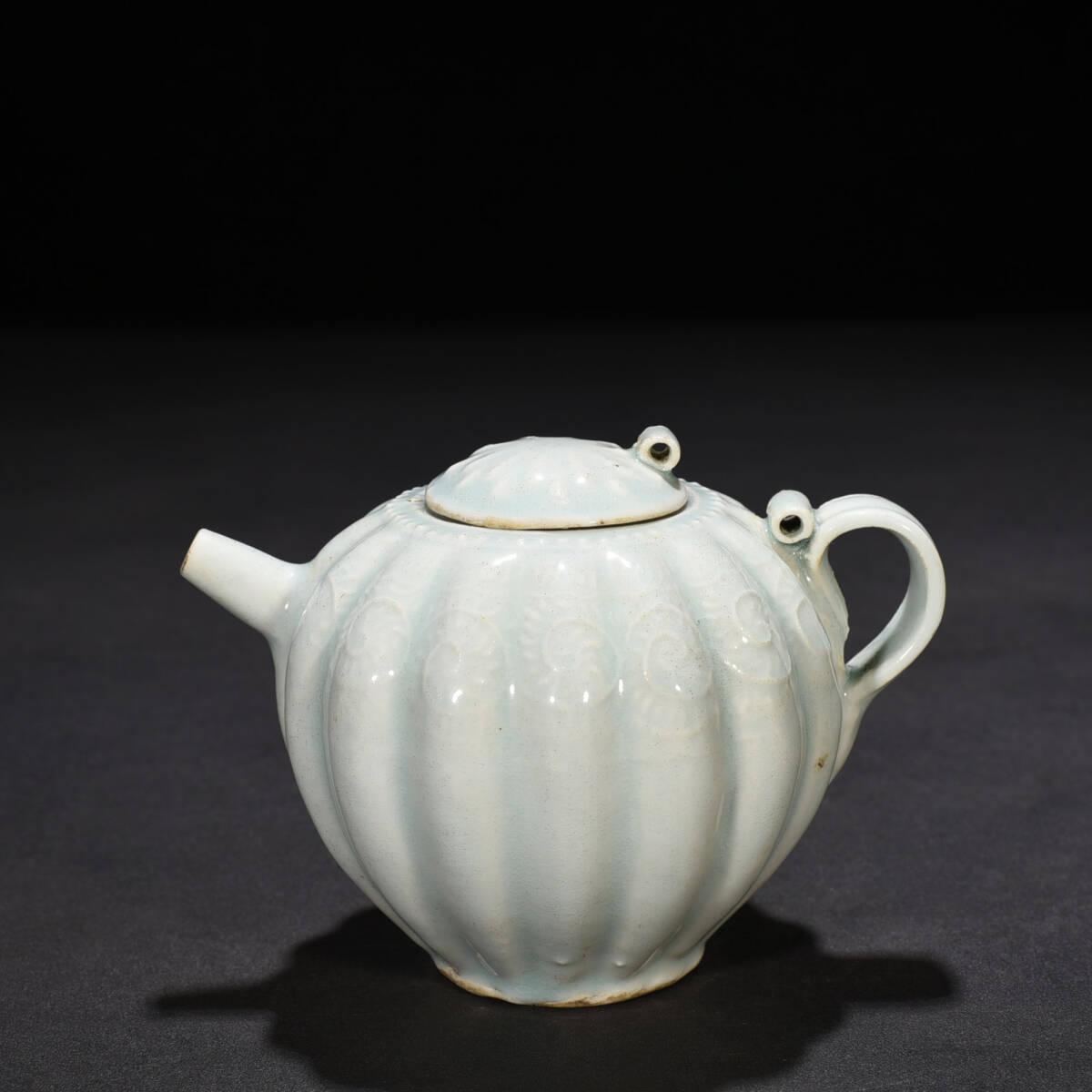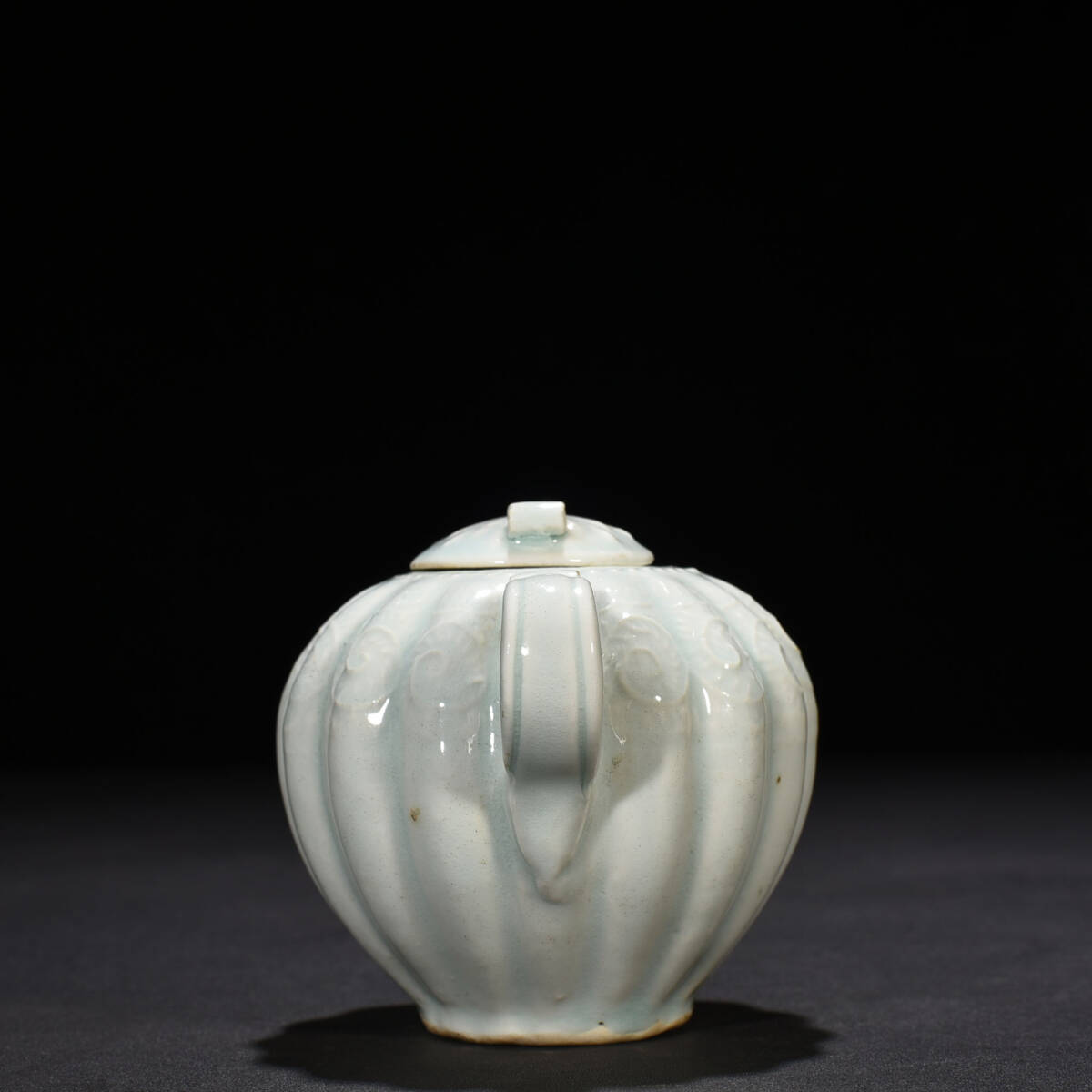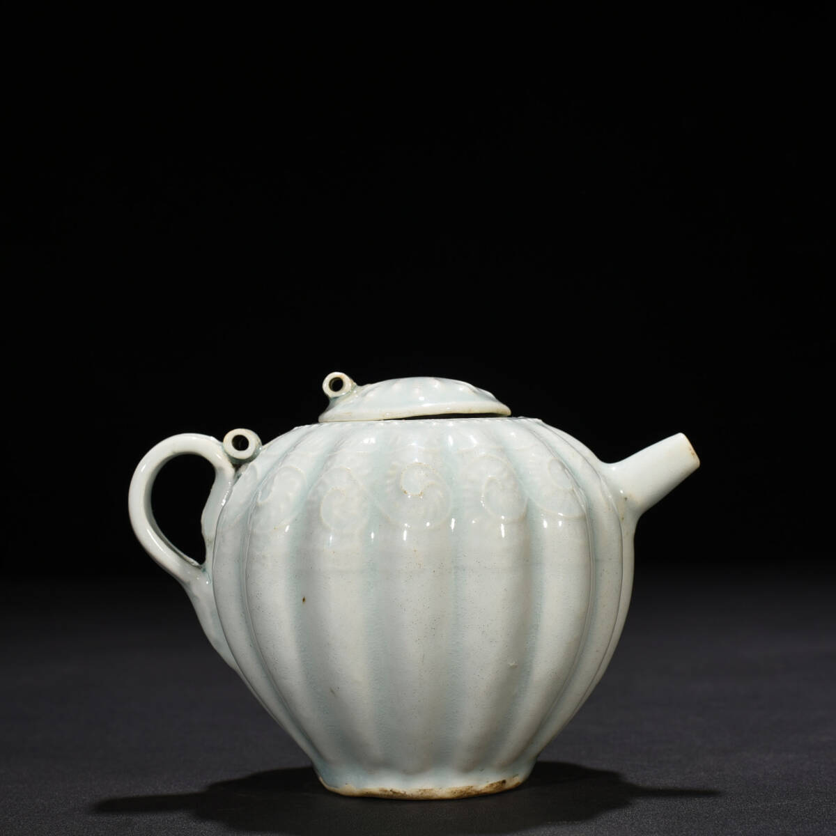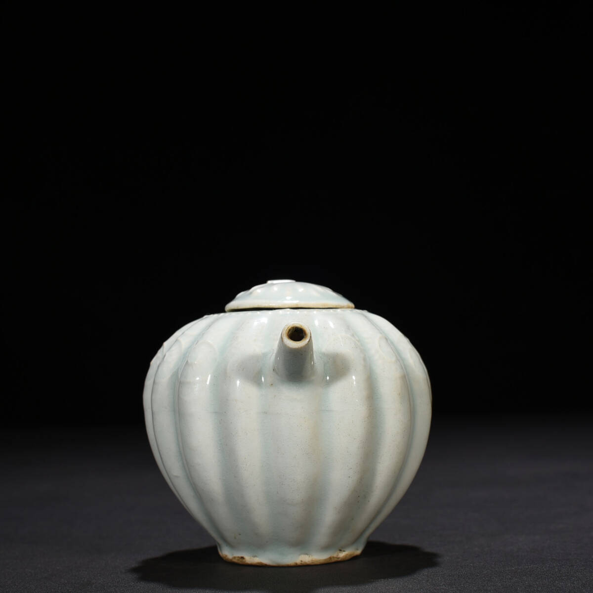 宋時代 湖田窯 影青釉瓜波壺 陶磁器 中国美術 高さ10 cm 幅13 cm 骨董品 唐物 818