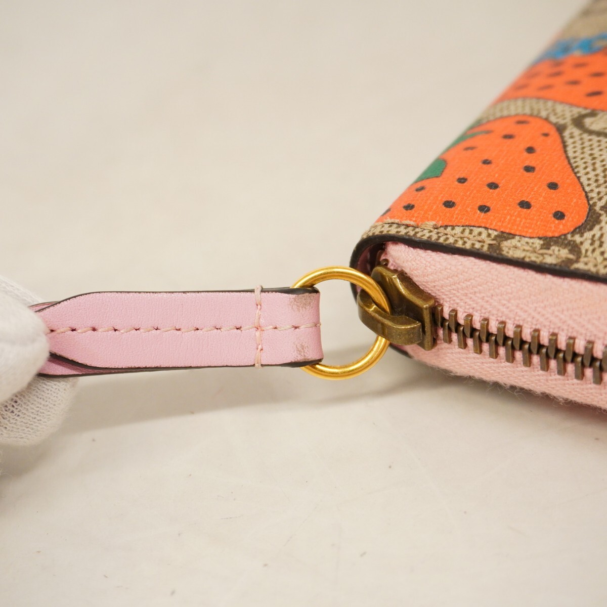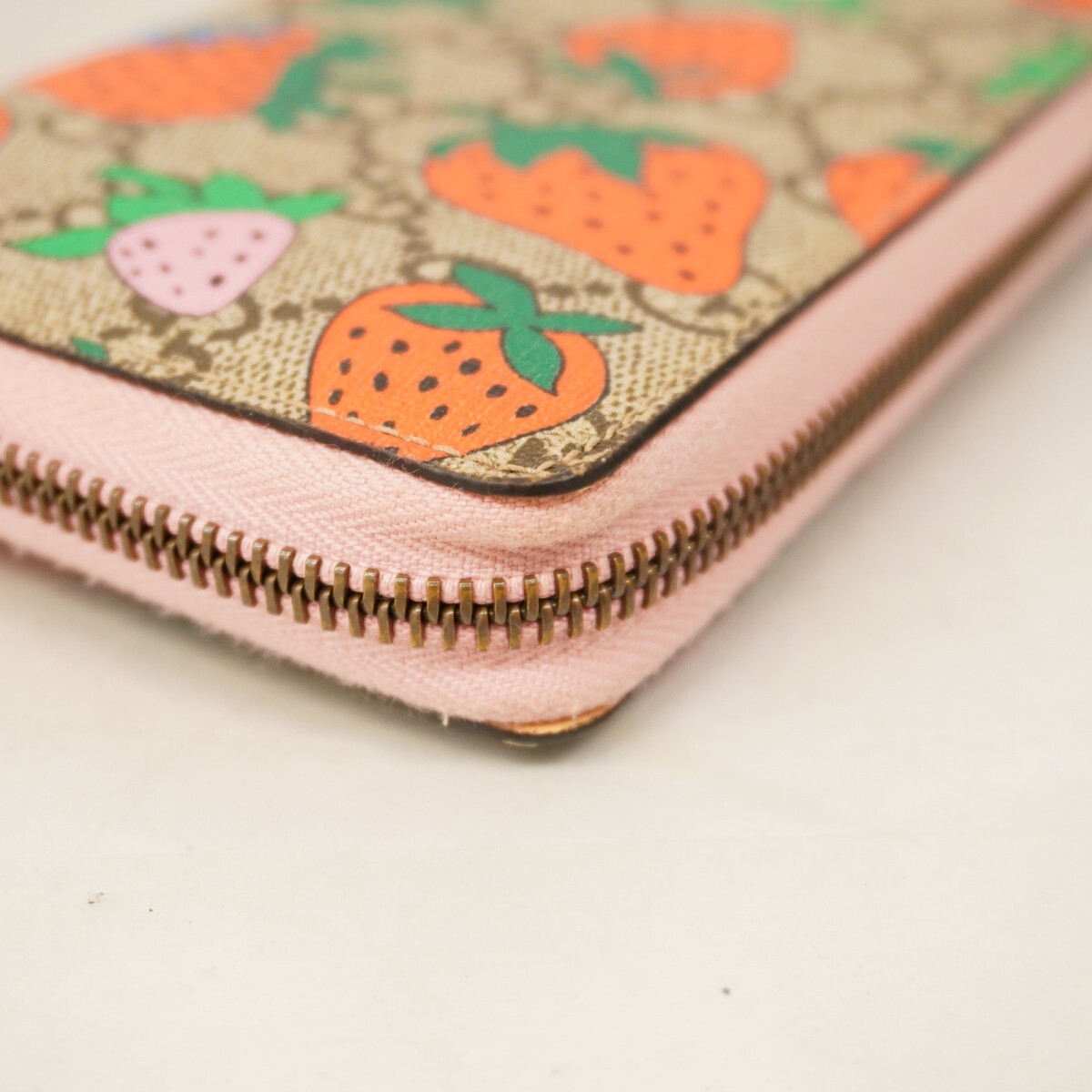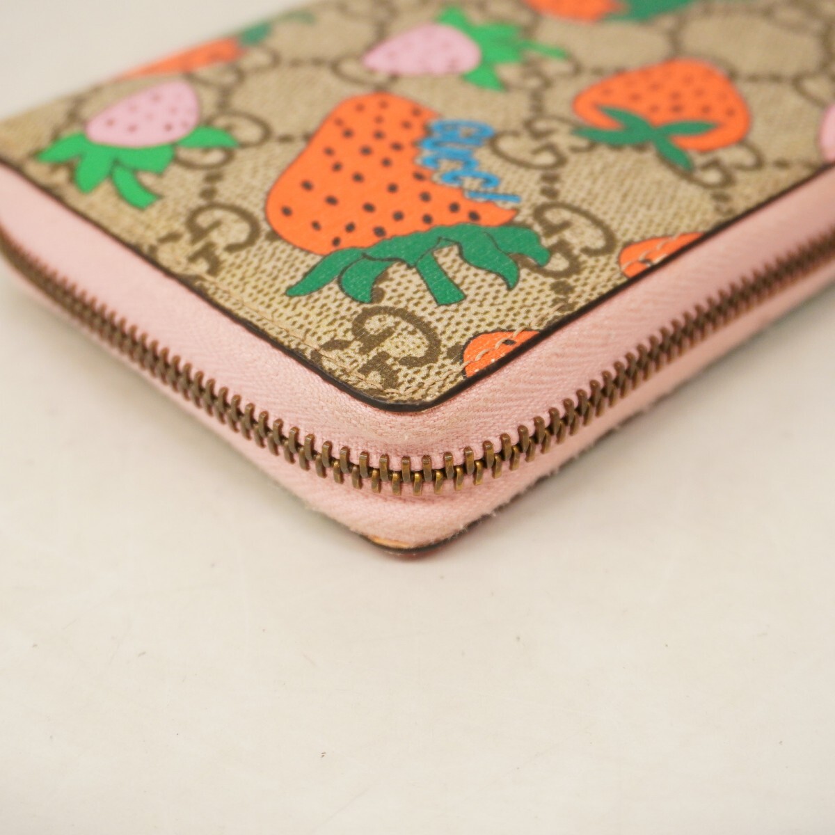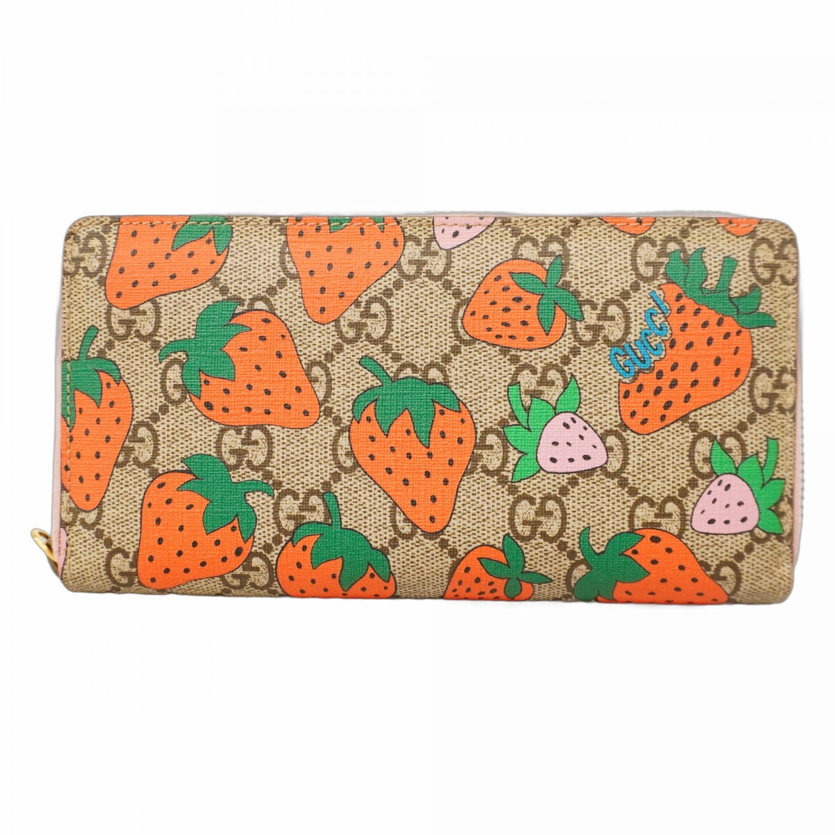 ★最終価格★SALE【5ge5581-h】グッチ 長財布 GGスプリーム ストロベリー 573865 PVC ブラウン ピンク レッド ゴールド金具