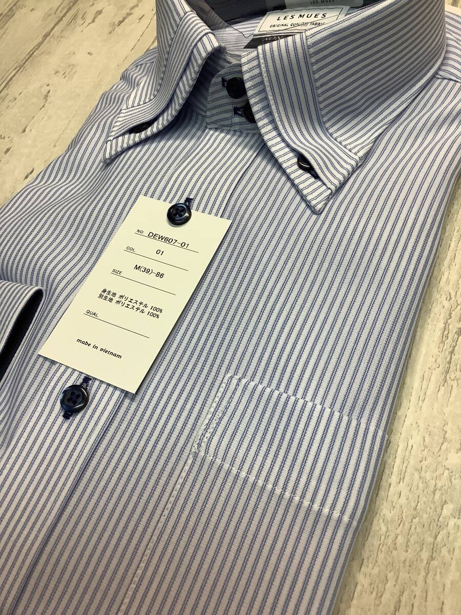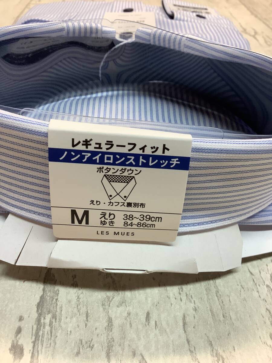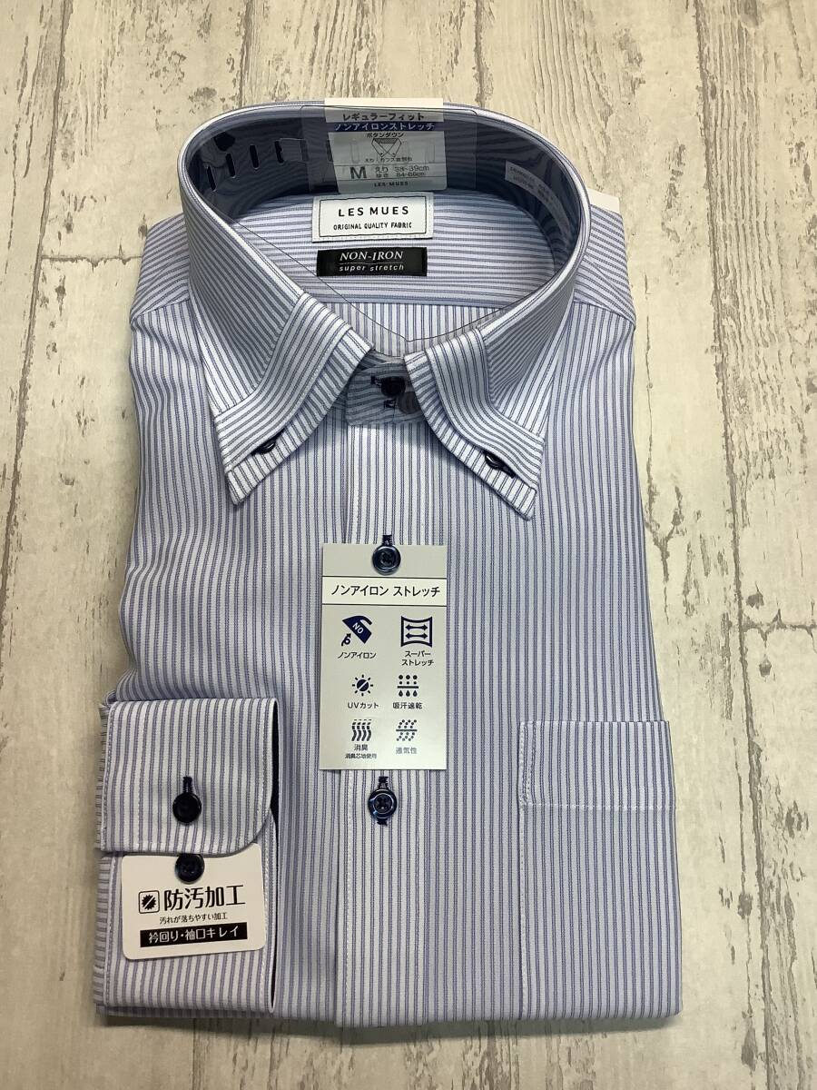 新品 39-86長袖Mサイズ ★ボタンダウン★ドレスシャツ ノンアイロン スーパーストレッチ素材 ブルー系ストライプ柄