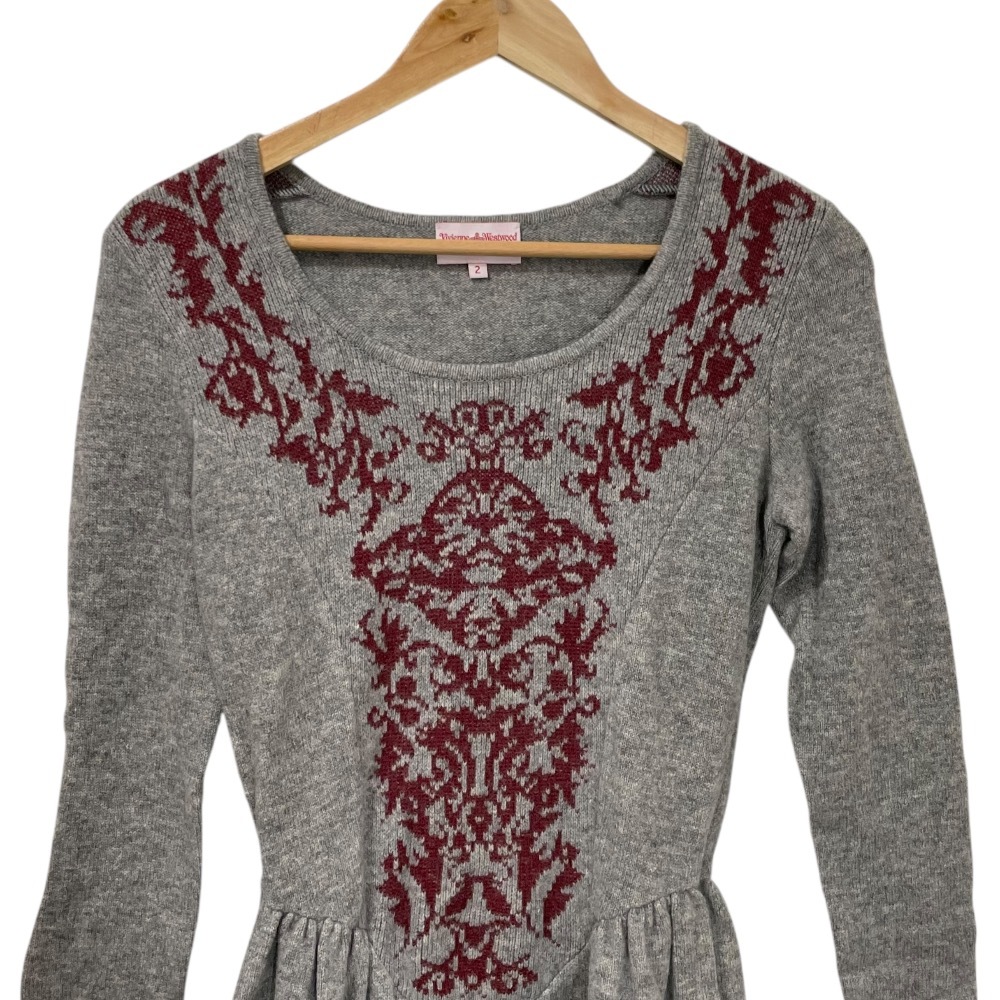美品 Vivienne Westwood red label ヴィヴィアンウエストウッドレッドレーベル オーブ 長袖 ニット ワンピース 2 グレー