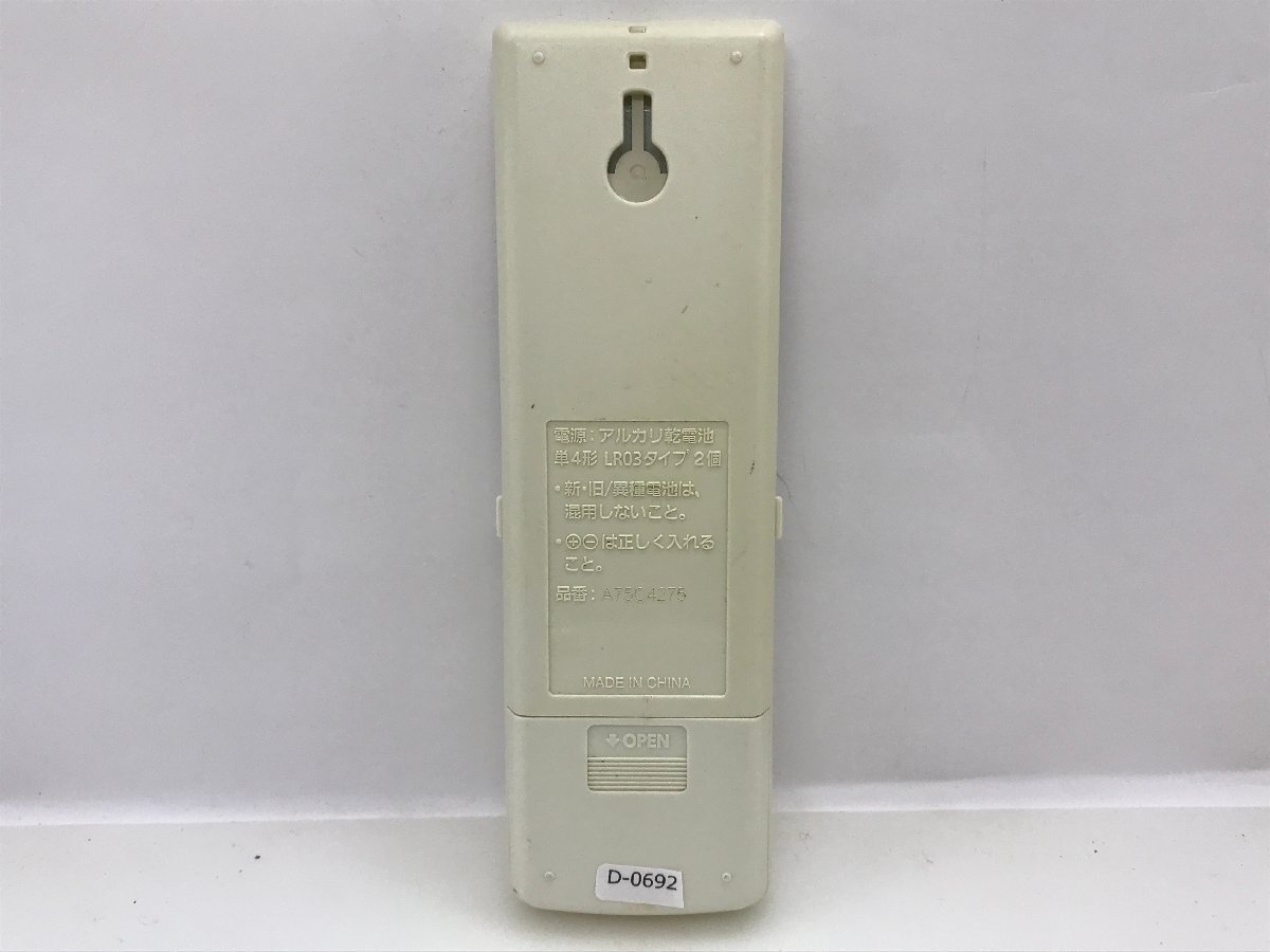 ※定形外郵便の場合、梱包材(プチプチ)を巻いて封筒での発送となります。 輸送中の保証等はございませんので、心配な方はヤマト宅急便での対応も致しますのでお知らせください。 ヤマト宅急便の詳細な送料はお届け先都道府県を明記のうえ、ご質問欄よりお問い合わせください。 お支払い後の発送方法の変更は対応できませんのでご注意ください。 ・赤外線の発光動作確認いたしました。 (ディスプレイがついているものは表示確認もしております。) (エアコンリモコンの場合、正面からだとディスプレイ表示が薄い仕様のものもございます。不具合ではございません。) ・対応機種などは、落札者様でお調べ頂きますようお願いいたします。 ・カバーや電池蓋など、写真に写っていない場合は付属しておりません。 写真に写っている物・状態で全てとなります。ご確認の上、入札をお願いいたします。 ・電池は付属しておりません。 ・清掃をしておりますが、中古品ですので、すりキズや落ちきらなかったよごれ等がある場合がございます。 気になる方は入札をお控えください。 | ||||
