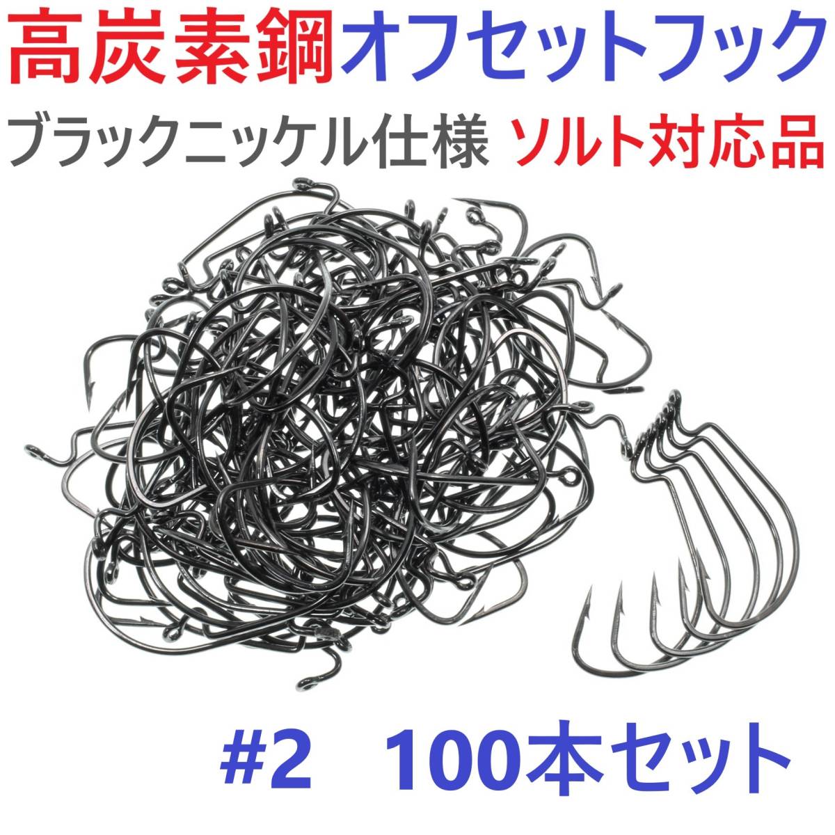 【送料180円】高炭素鋼 オフセットフック #2 100本セット ブラックニッケル仕上げ ワームフック テキサスリグ等様々なリグに!