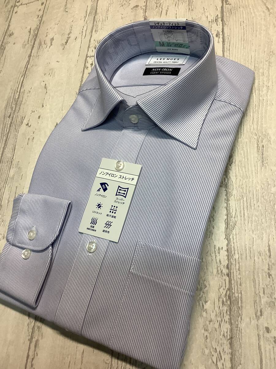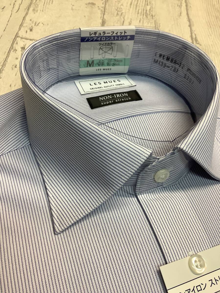 新品未使用 カッターシャツ ★39-78 長袖Mサイズ ★ブルーストライプ ワイドカラー 定価4,990円 スーパーストレッチドレスシャツ