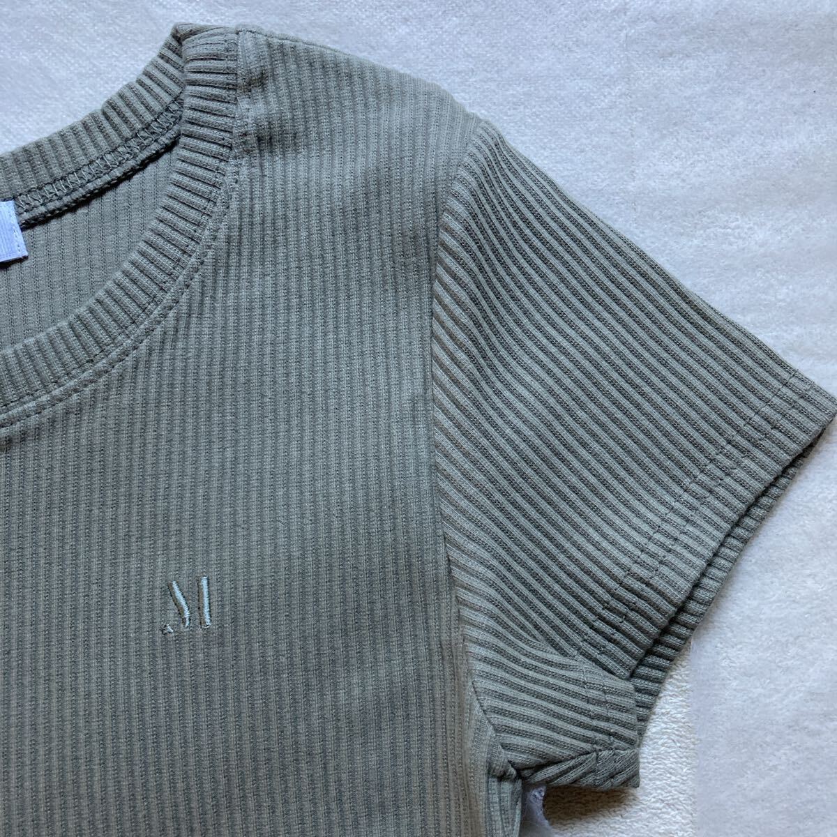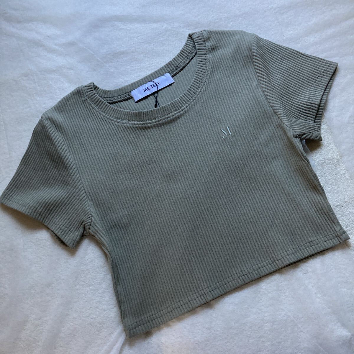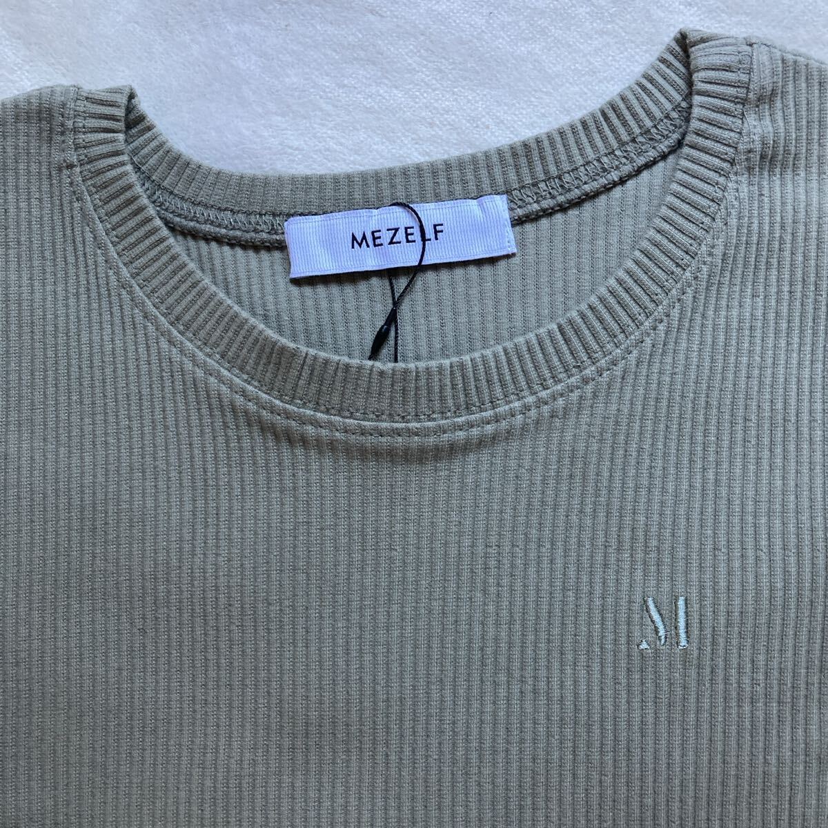 MEZELF(ミゼルフ)のリブ編みクロップドTシャツです。シンプルながら体にフィットするシルエットで、1枚で着てもインナーとしても着回し抜群。カーキカラーで合わせやすく、さまざまなスタイルにマッチします。