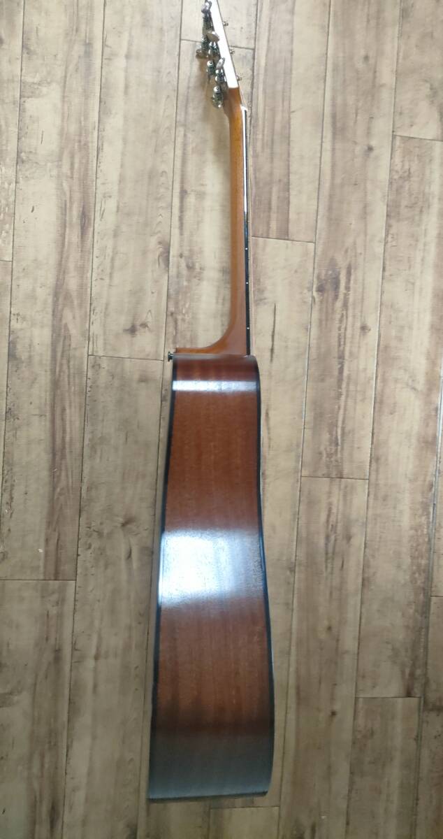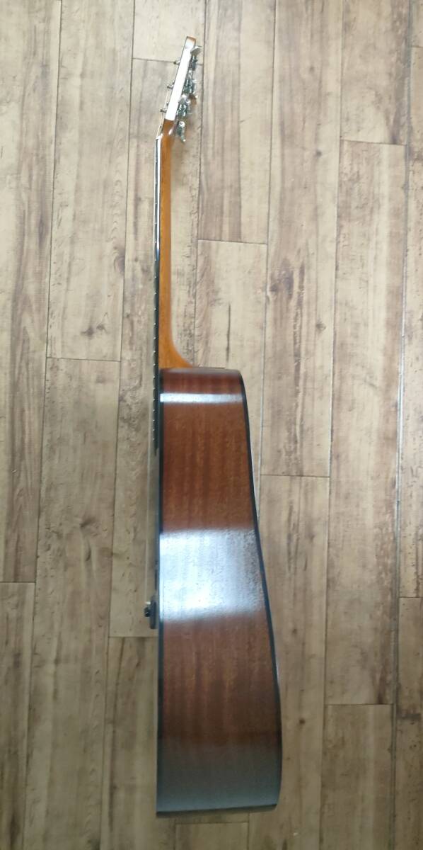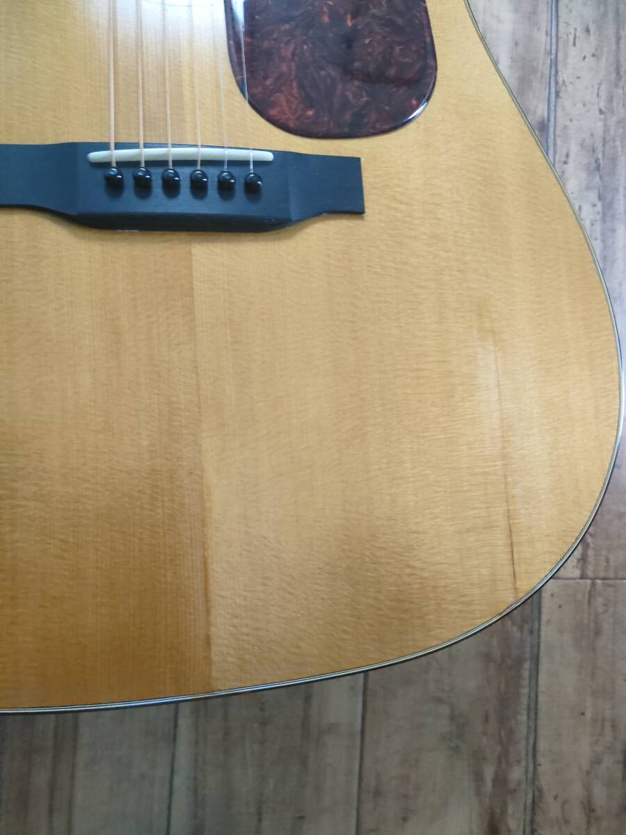 サウンドはオール単板と漆の極薄塗装により大変ふくよかで音が大きいギターです。トップ:シトカ・スプルース。サイド&バック:ホンジュラス・マホガニー。