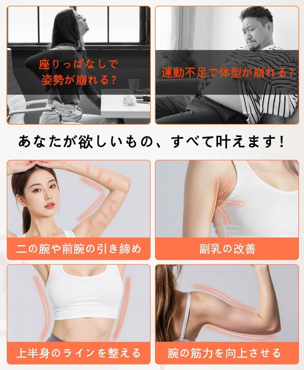 ◆1日数分の使用でも腕や肩の筋肉にしっかりと刺激をあたえられます。