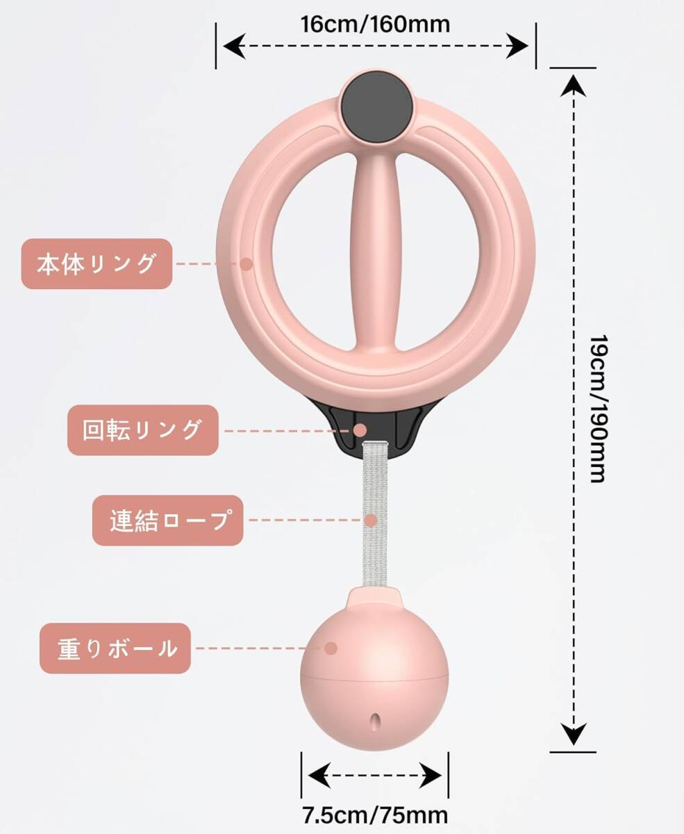 ◆360°回転するリング状レールと吊り下げ式ウエイトボールを内蔵しており、振るだけで滑らかにボールが遠心運動し、腕全体に絶えず負荷を与えます。