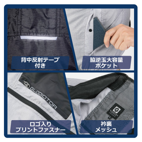 コーコス グラディエーター 空調風神服 フルハーネス対応 【 G-6212 】ボルトクール長袖ジャケット■4Lサイズ■ インディゴ色