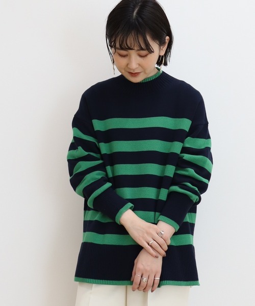 参考商品名:ハイネックパネルボーダーニットチュニック