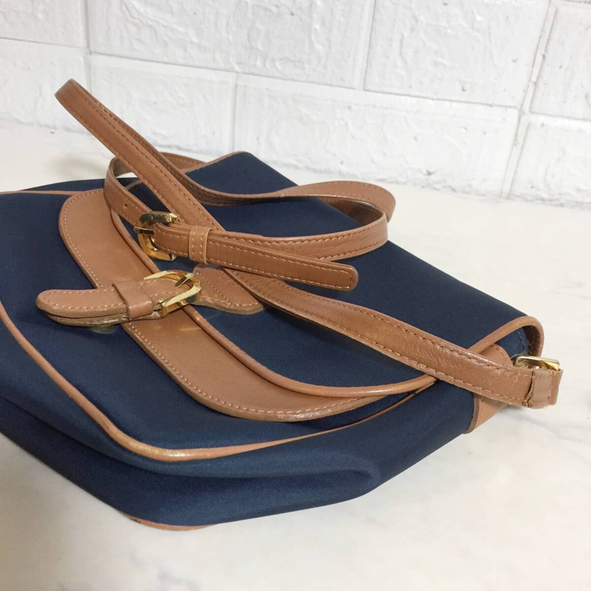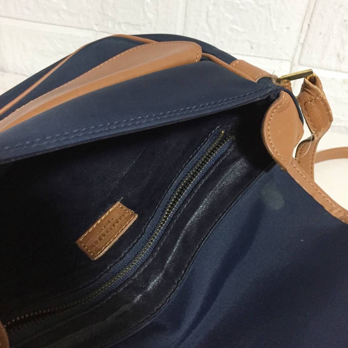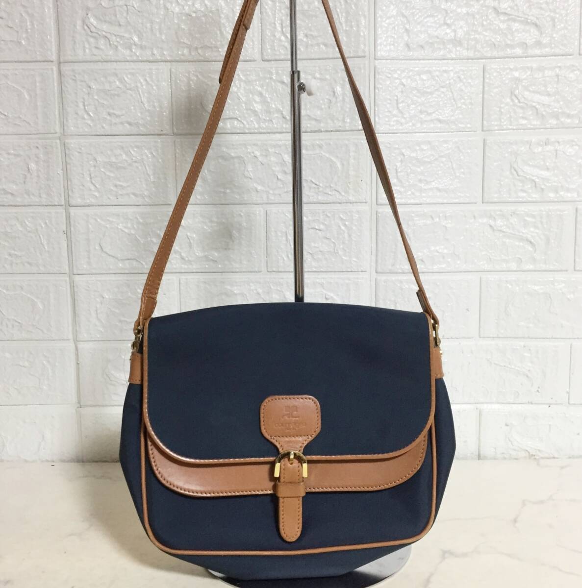 no37236 Courreges クレージュ レザー ナイロン 斜め掛けショルダー バッグ