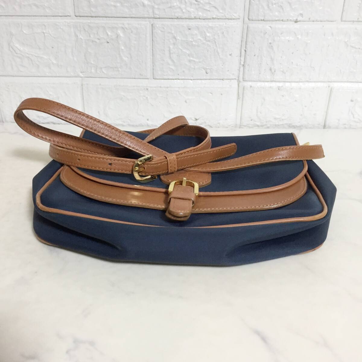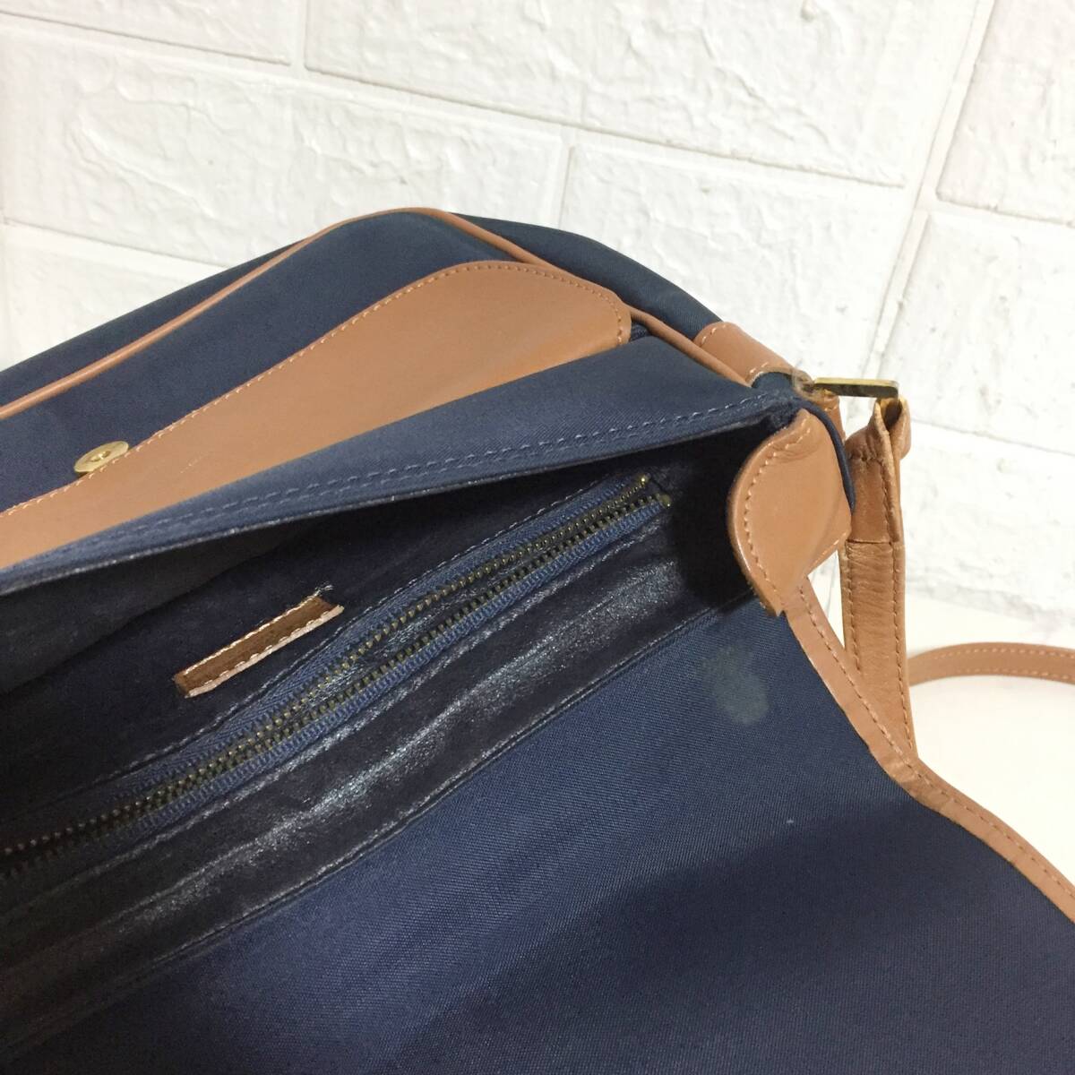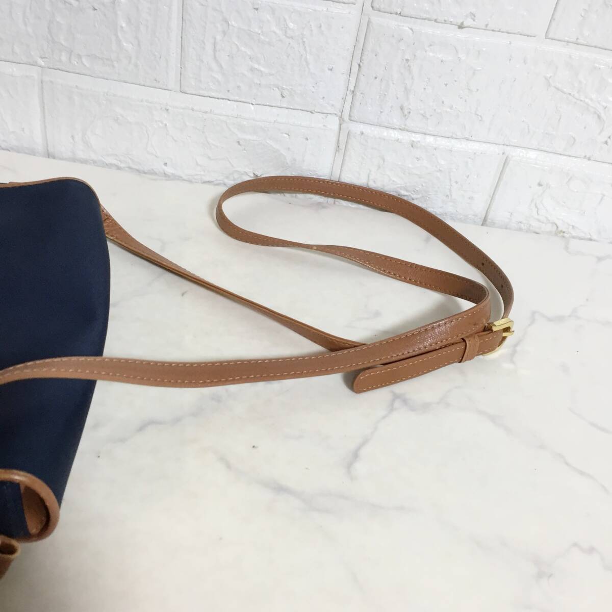 no37236 Courreges クレージュ レザー ナイロン 斜め掛けショルダー バッグ
