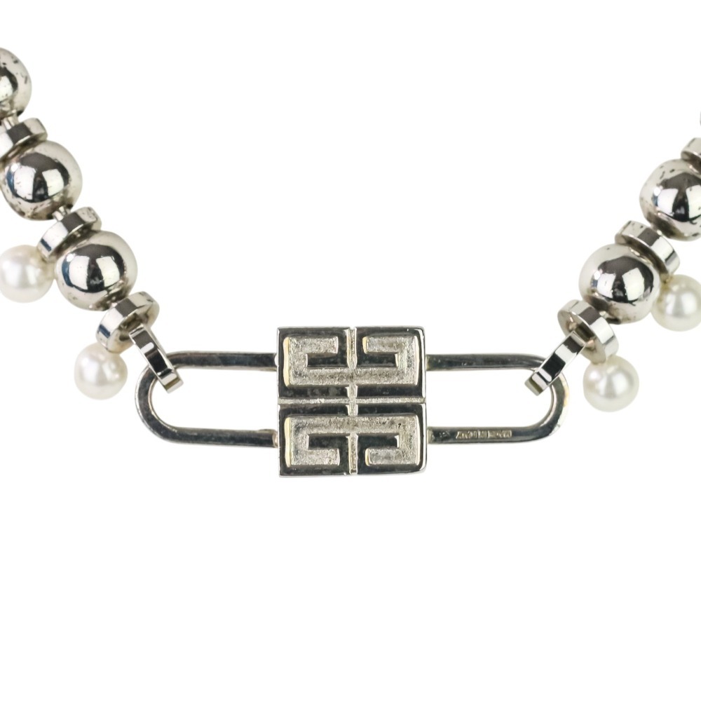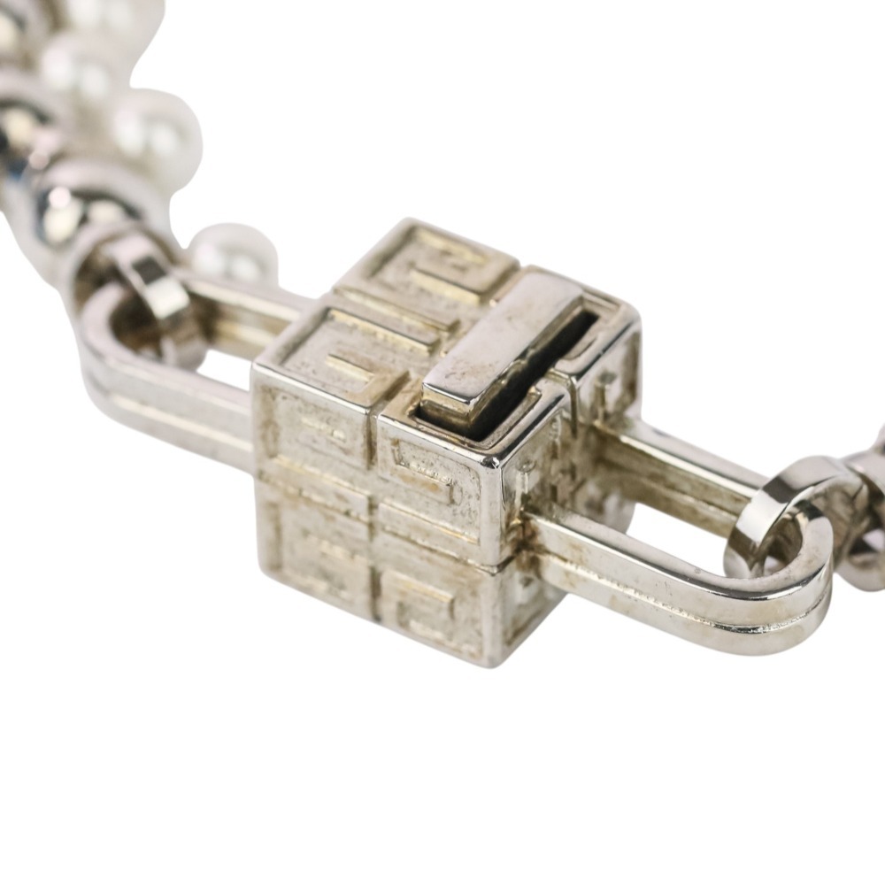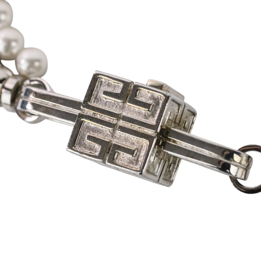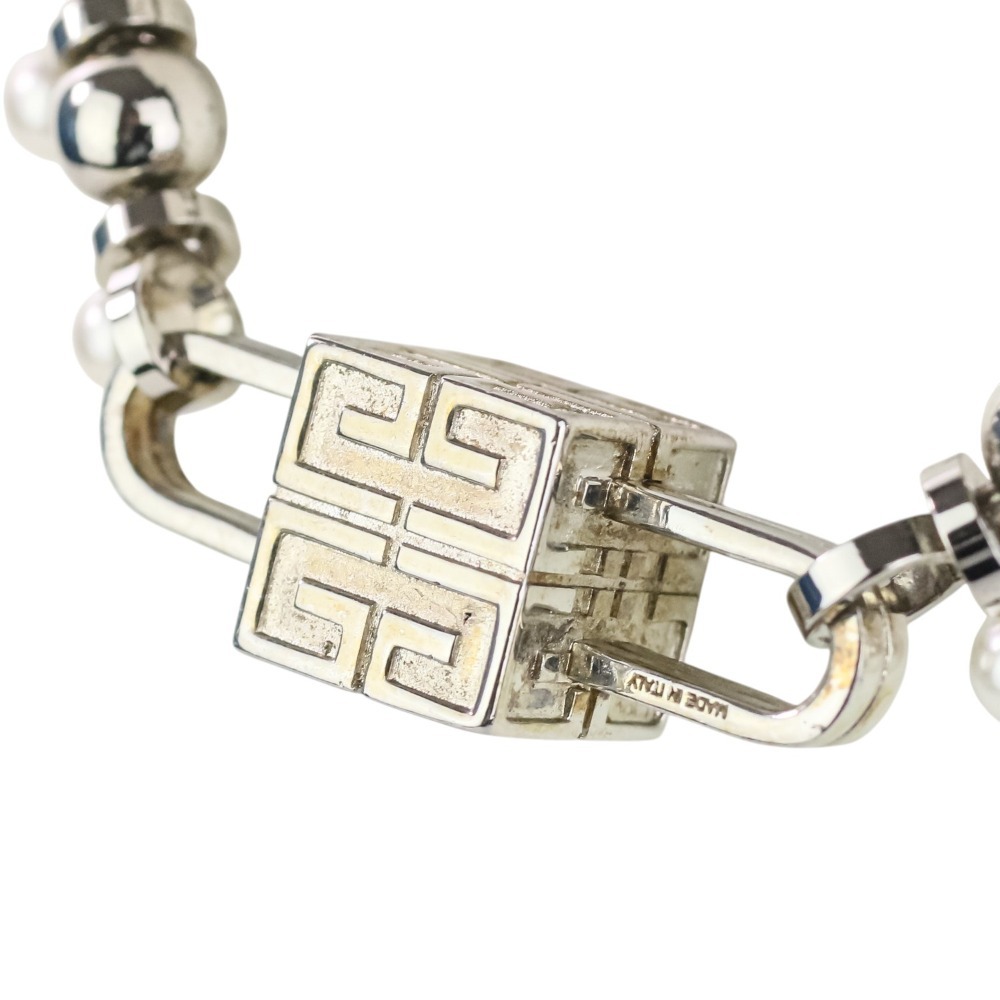 良品 GIVENCHY ジバンシィ 4Gメタル ロゴキューブ ボール×フェイクパールネックレス シルバーカラー