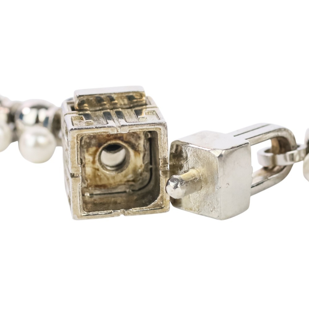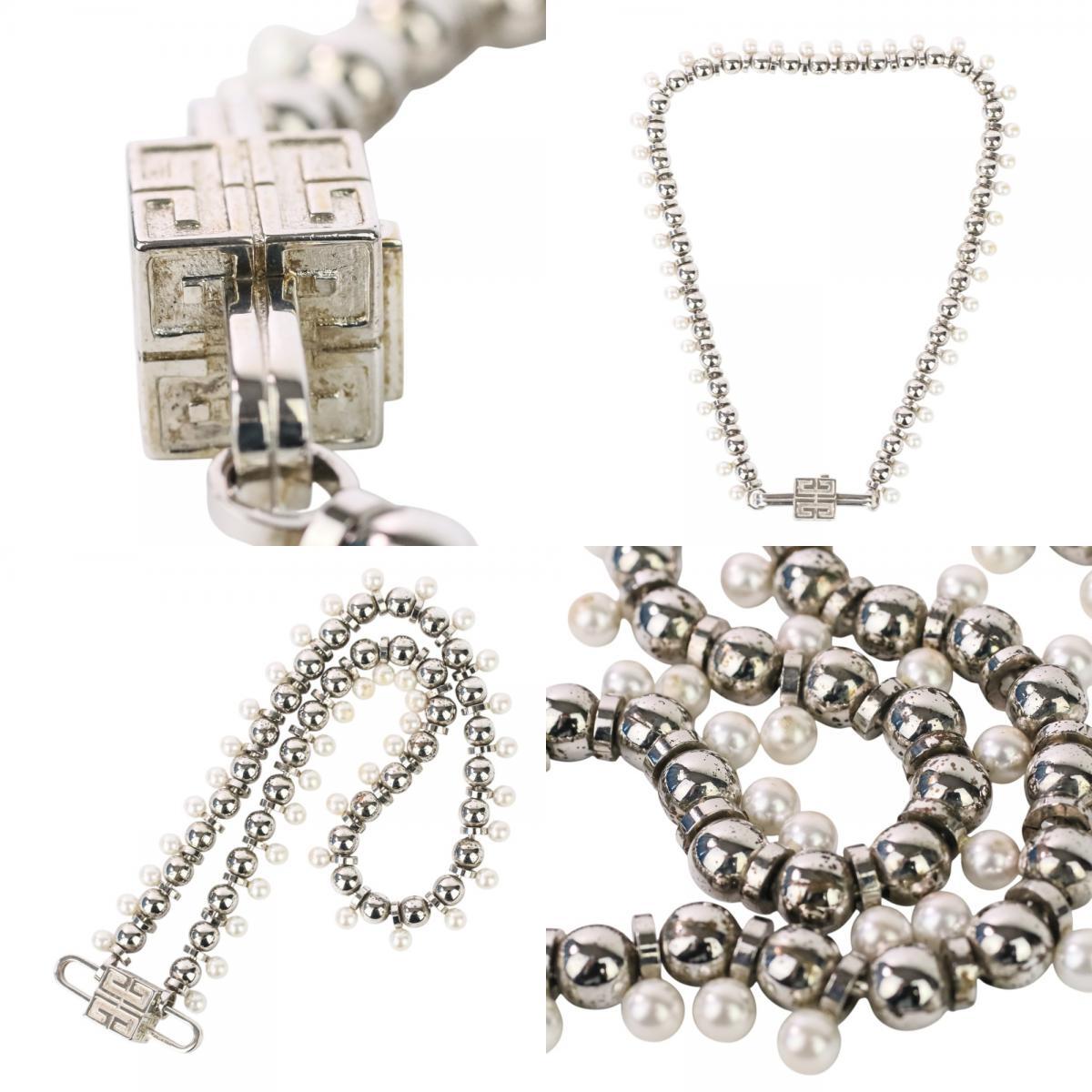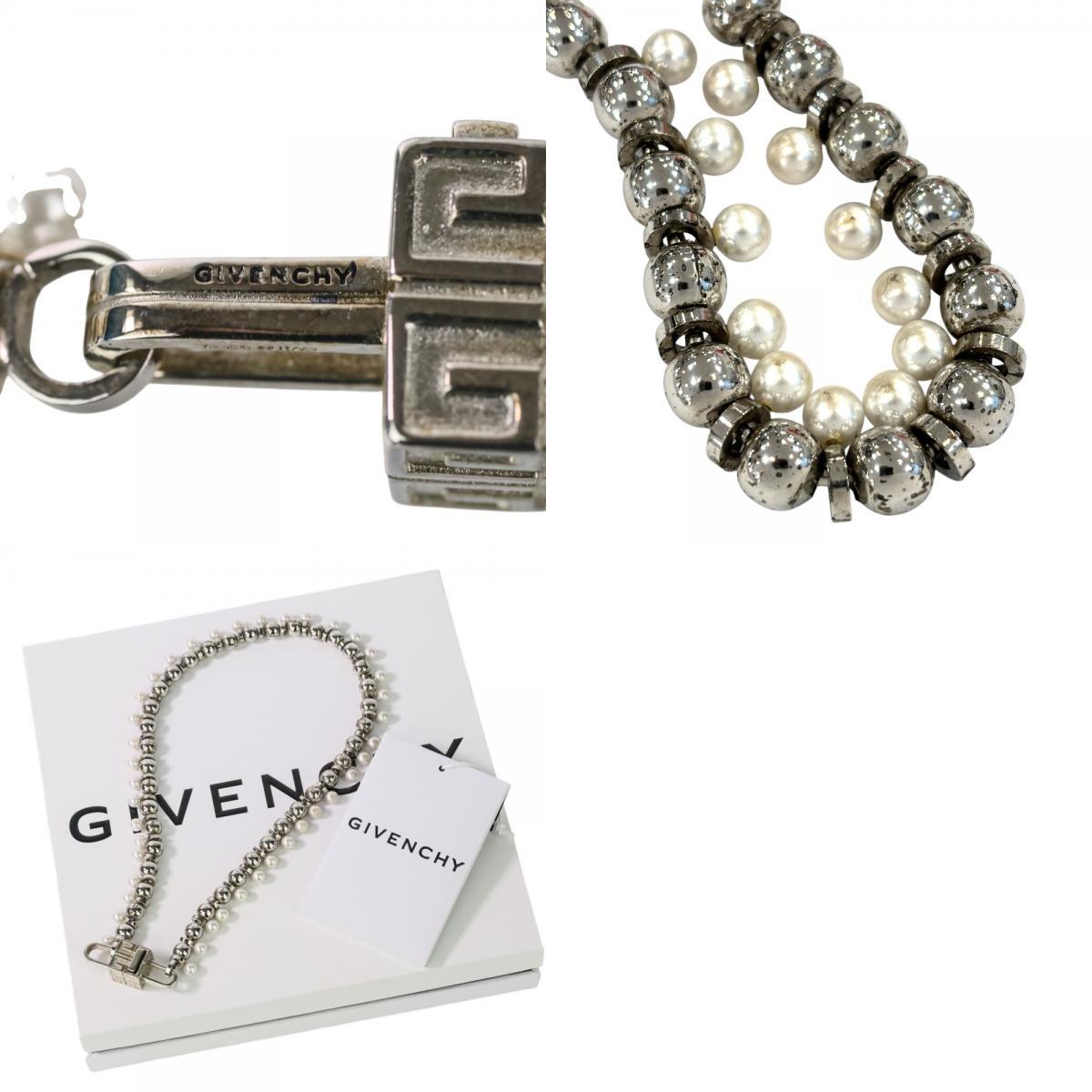 良品 GIVENCHY ジバンシィ 4Gメタル ロゴキューブ ボール×フェイクパールネックレス シルバーカラー