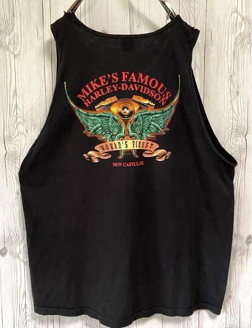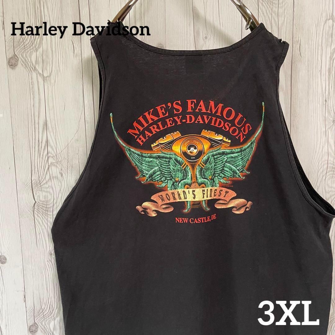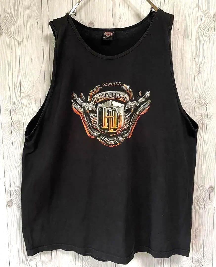 HARLEY DAVIDSON ハーレーダビッドソン タンクトップ メンズ3XLサイズ ノースリーブ ブラック黒 ライダー デカプリント 袖なしシャツ