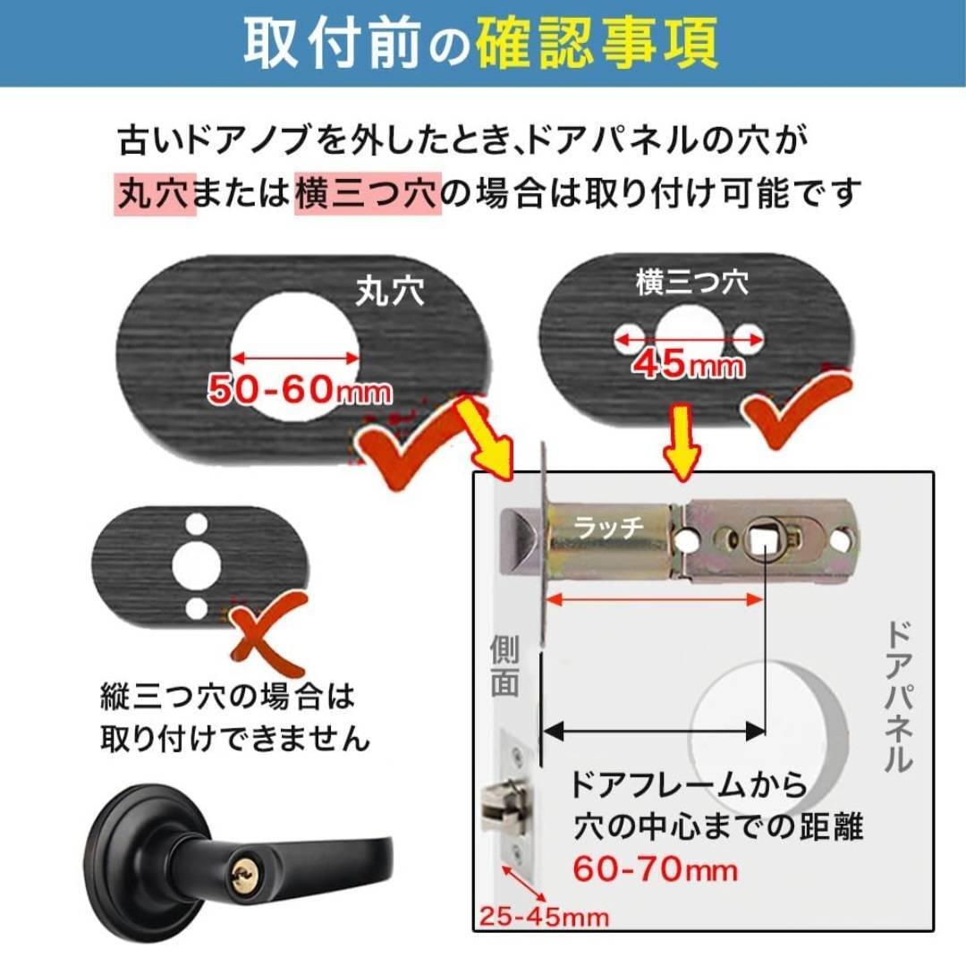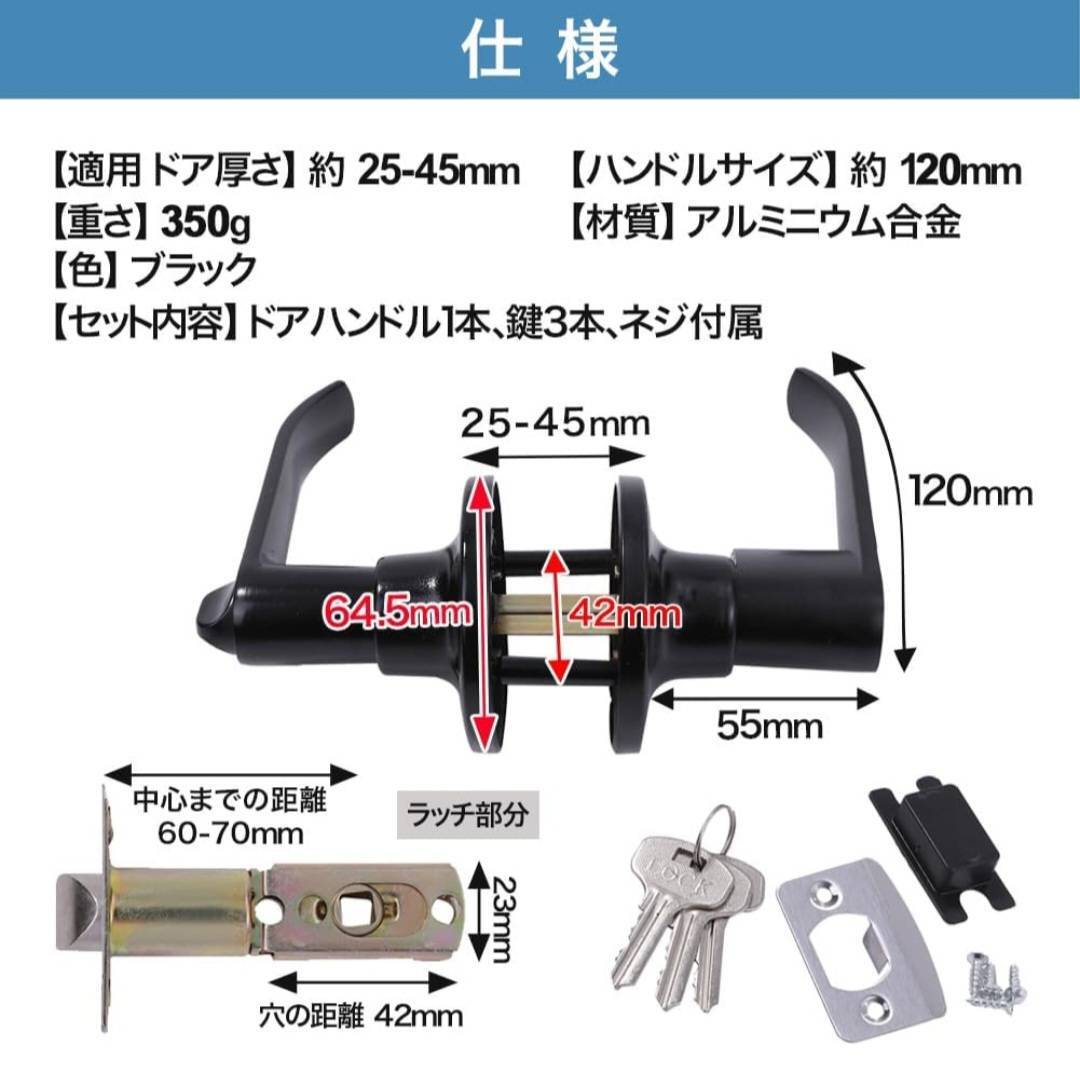 【1円オークション】ドアノブ 鍵付き レバーハンドル ドアレバー 浴室 トイレ 玄関 室内 交換 鍵付き ドアレバー (ブラック) BAS1824