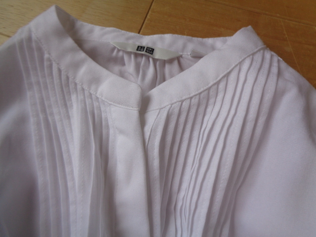 UNIQLO バンドカラー 長袖ブラウス/チュニック ピンタック可愛い♪ 白 M 美品(^^♪